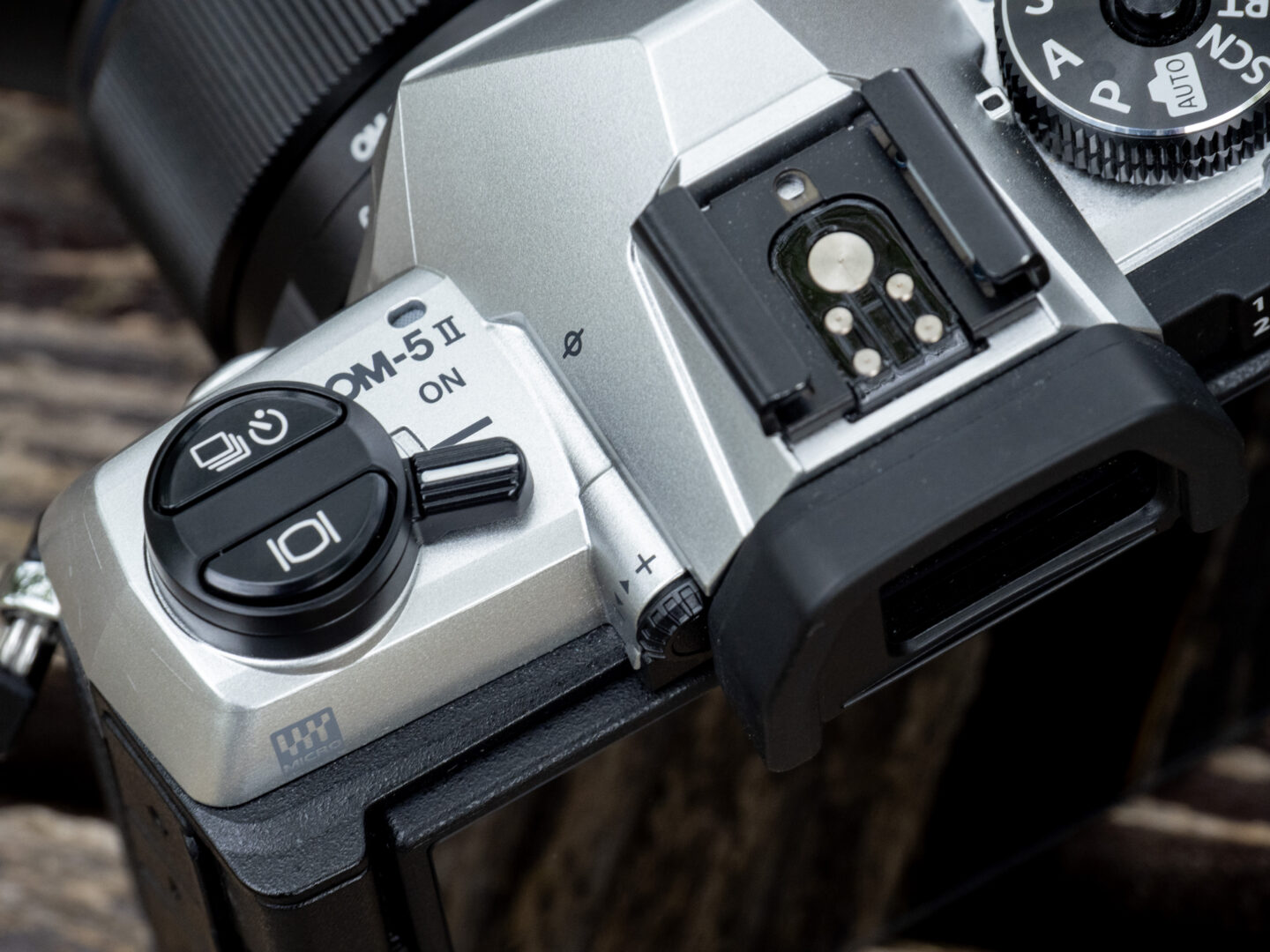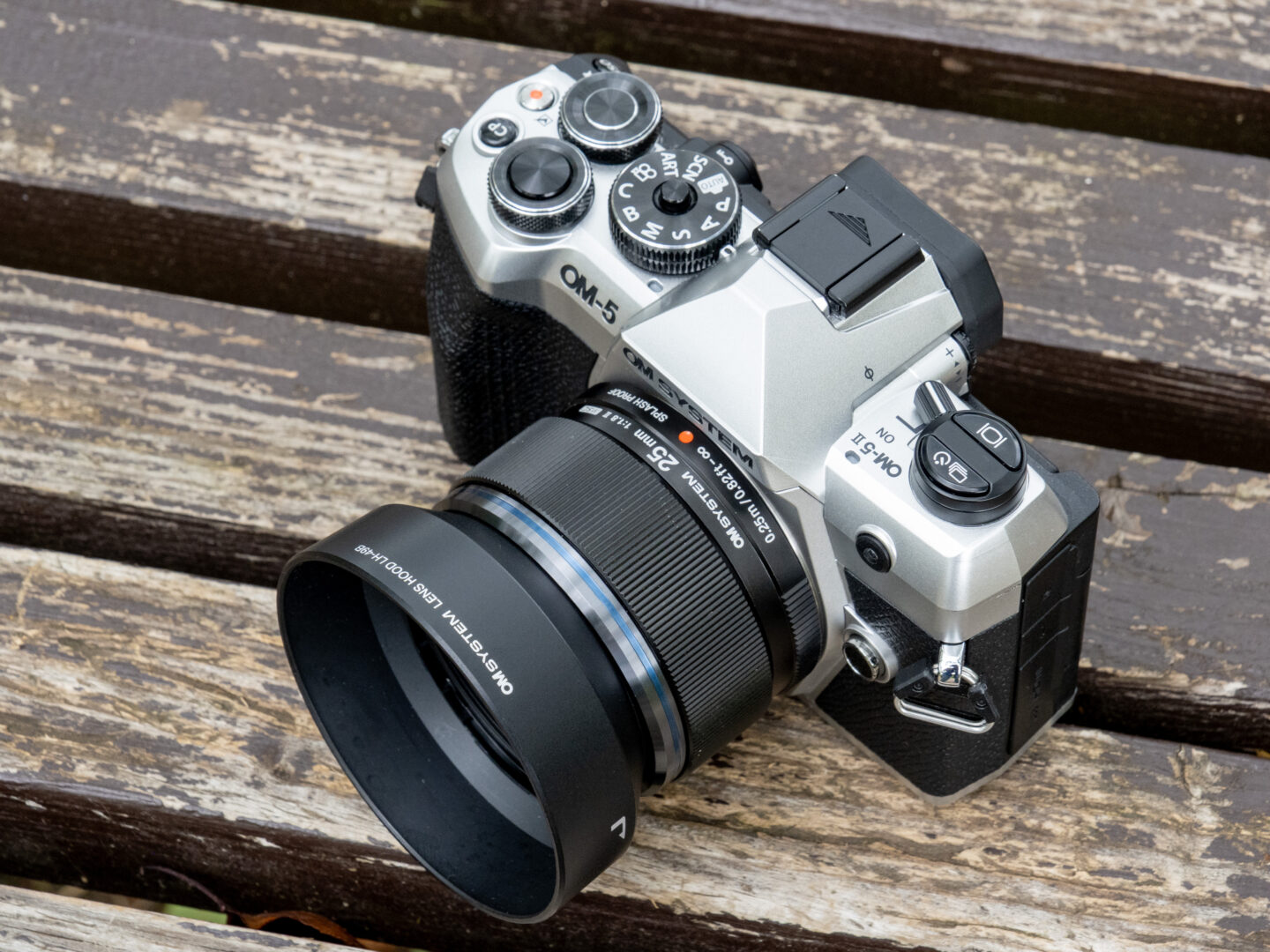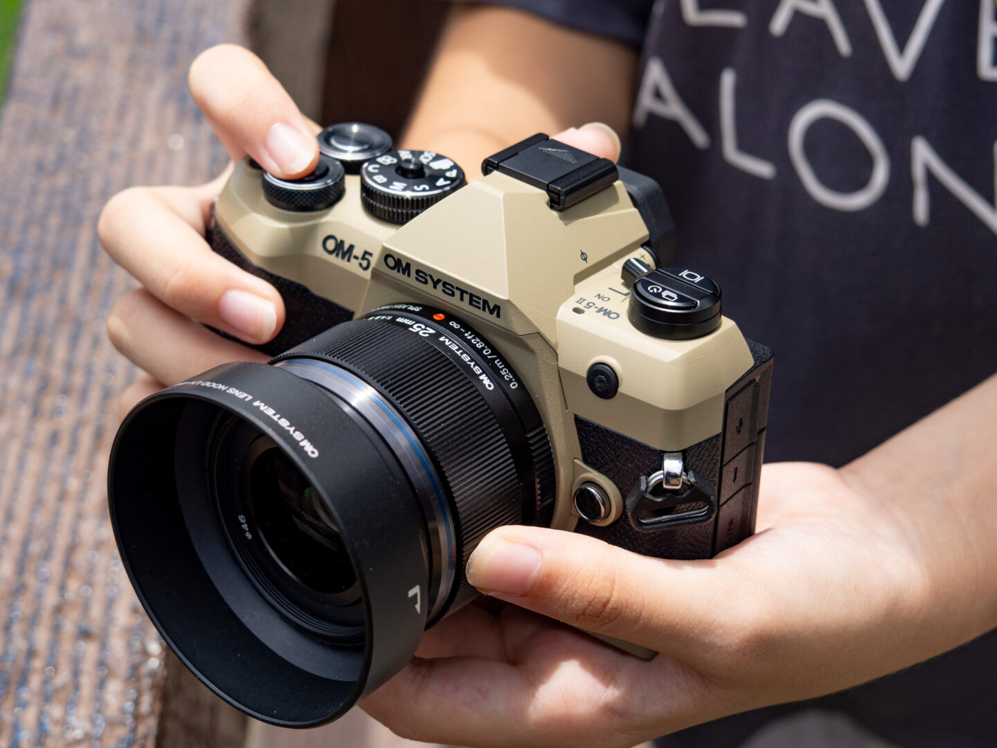 OM-5 Mark IIに単焦点レンズのM.ZUIKO DIGITAL 25mm F1.8 IIを装着。とてもコンパクトなレンズだが、それに負けず劣らずOM-5 Mark IIボディもコンパクトであることから、シンプルでありながらも極めて凝縮感の高い姿となる。それでいてカメラ上面に配置されたダイヤル&レバー類は十分な大きさであり、操作性はしっかりと確保されている。