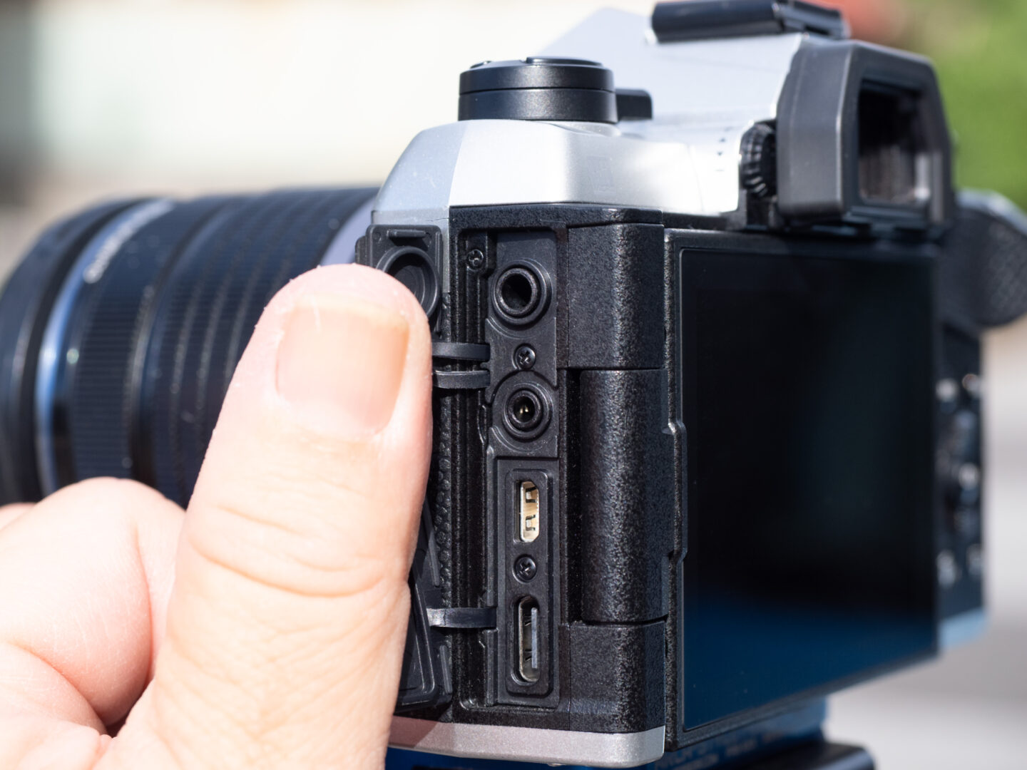 OM-5のUSBの端子はUSB Micro-Bだったが、OM-5 Mark IIではUSB Type-Cに変更された。同時にモバイルバッテリーからの充電・給電にも対応。ただしUSBの規格はUSB3.0(Superspeed)ではなくUSB2.0 (Hi-Speed)となるのでデータ通信速度は従来通りのままだと思われる。