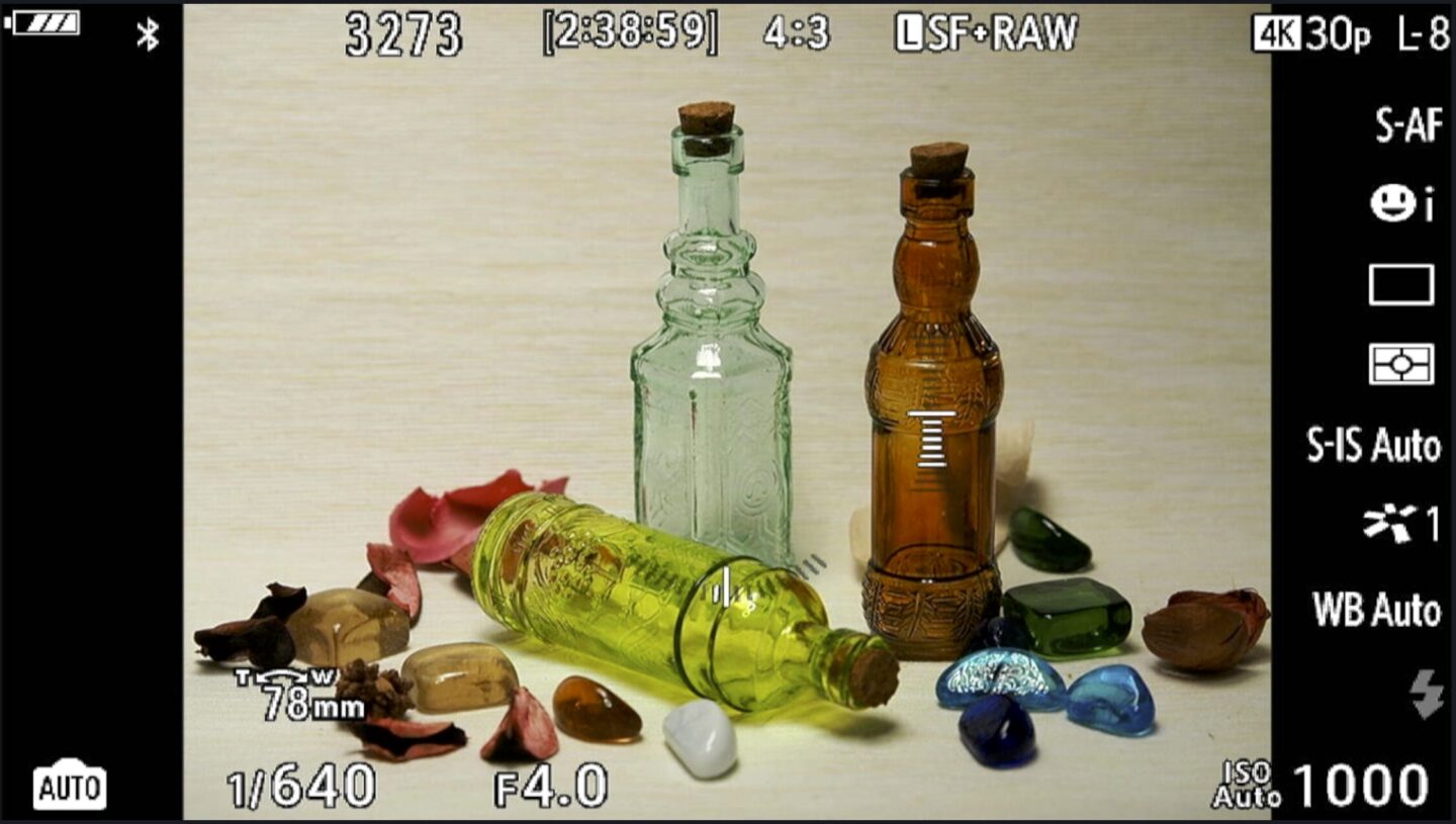 AUTOモードに設定した際のライブビュー画面。レンズの絞り値やシャッタースピード、ISO感度などほぼ全ての設定が自動で行われる。AFを合わせる位置は十字キーもしくはタッチAF機能を利用することで任意の場所を選ぶことができる。