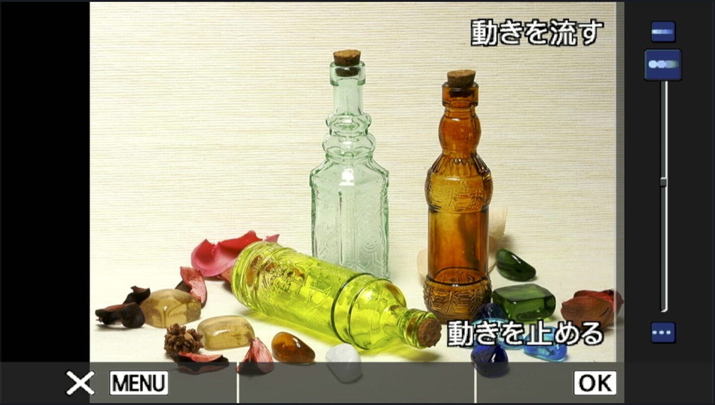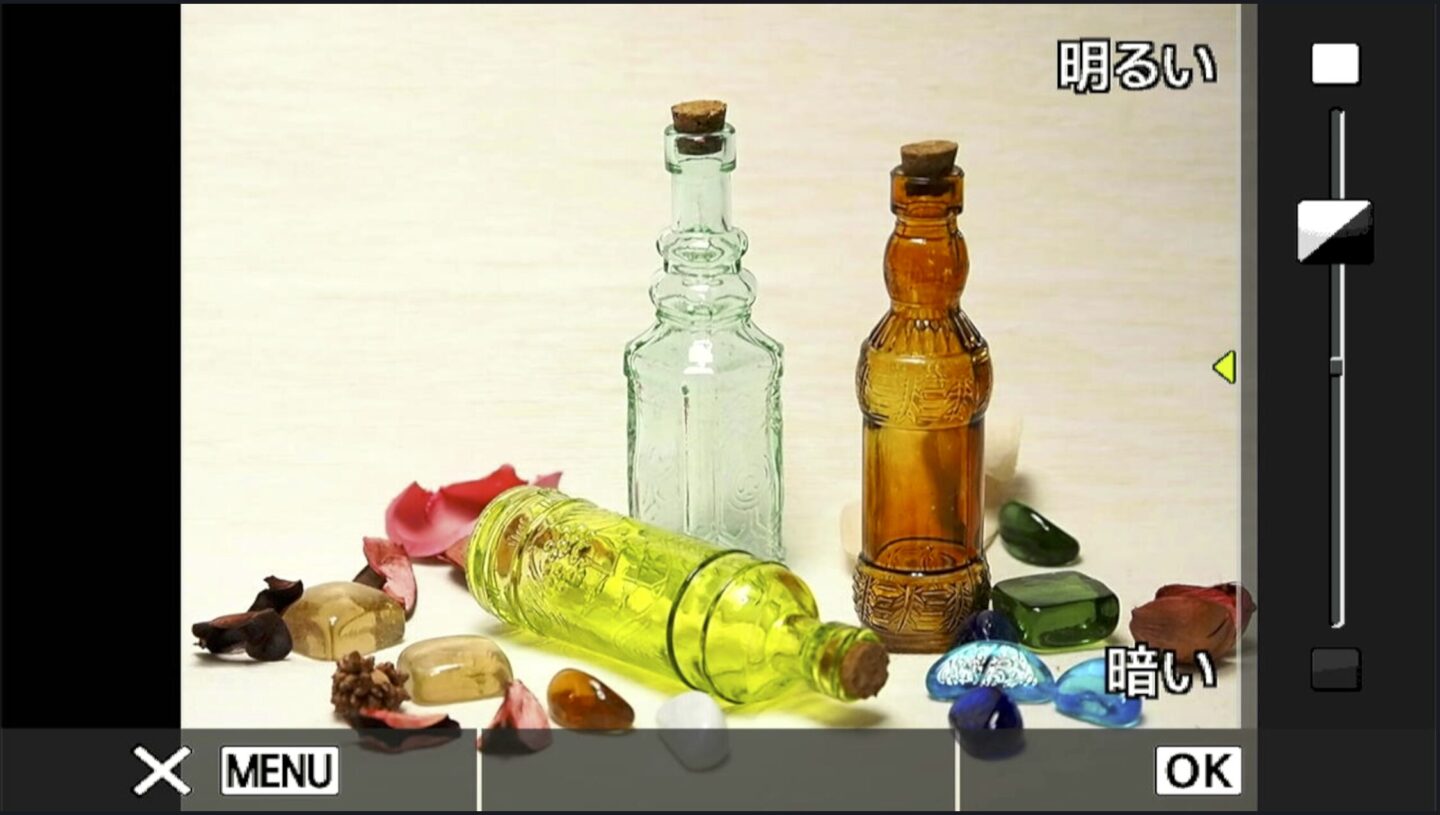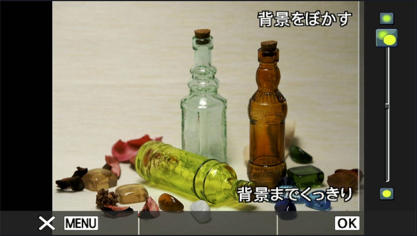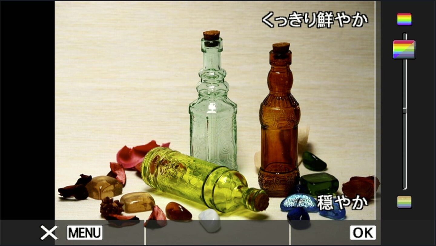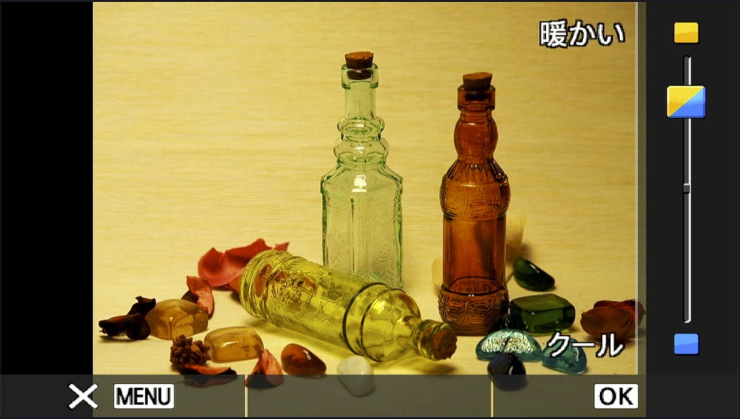 AUTOモードでも撮影時の明るさや色の鮮やかさ、色温度設定、被写界深度設定(ぼけ具合)などを加味することができる。設定の調整はモニター画面に表示させた各パラメーターを指先でタッチして変更する。いずれもパラメーターの変化を画面の画像を確認しながら直感的に調整できる。