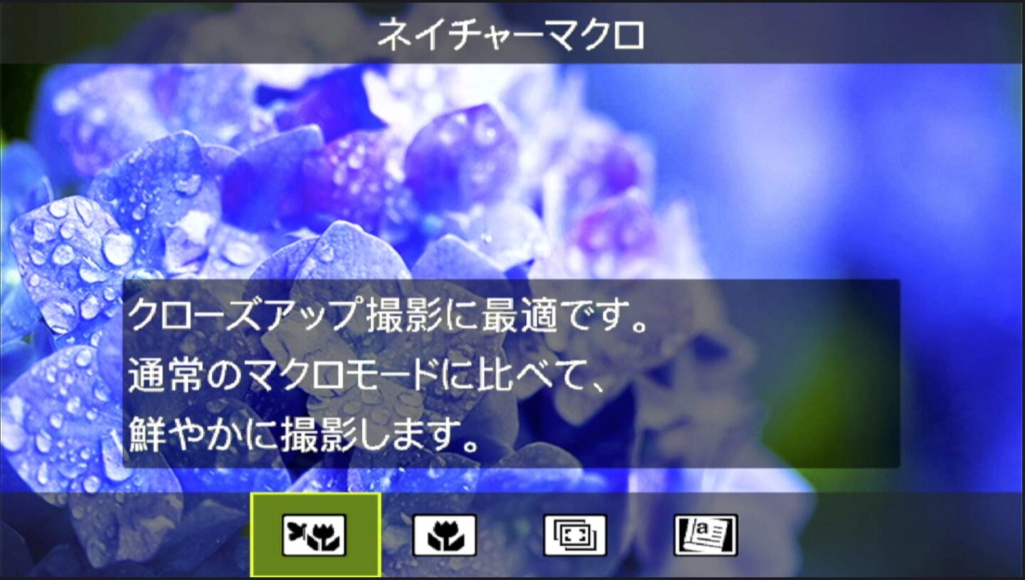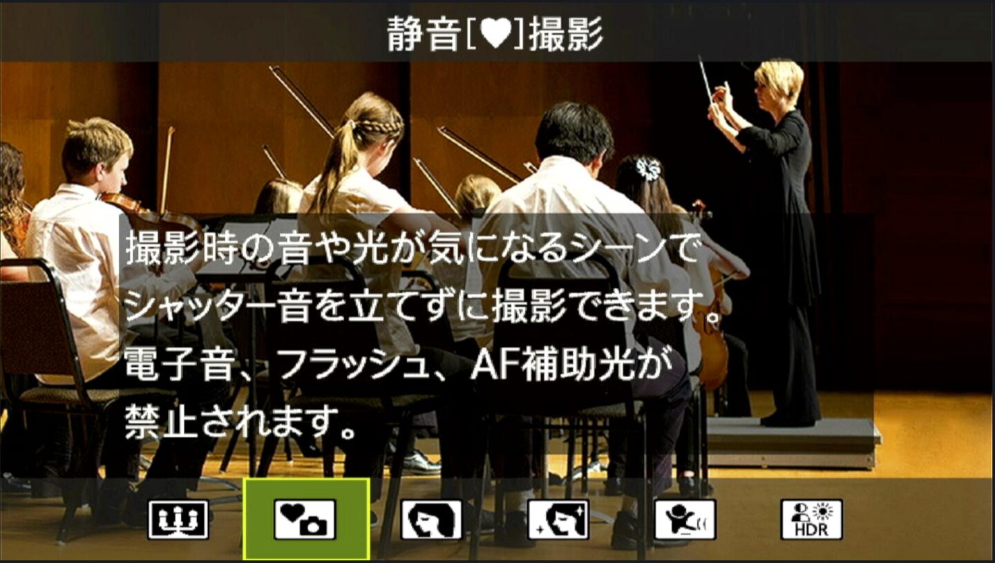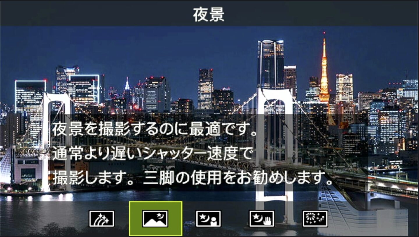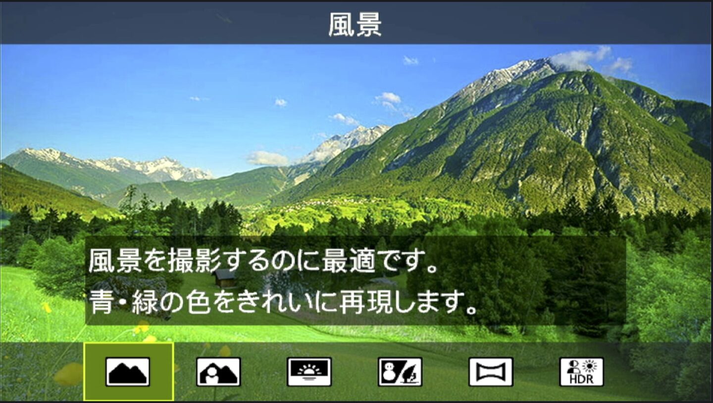 シーンモードは撮影モード「SCN」からも選択することができる。6つの撮影テーマごと計22種類が用意されたなかから撮影シーンにあったものを直接選んで撮影する。これも初心者におすすめできる撮影モードだ。ただし明るさや色の鮮やかさなどの設定を変更することはできない。
