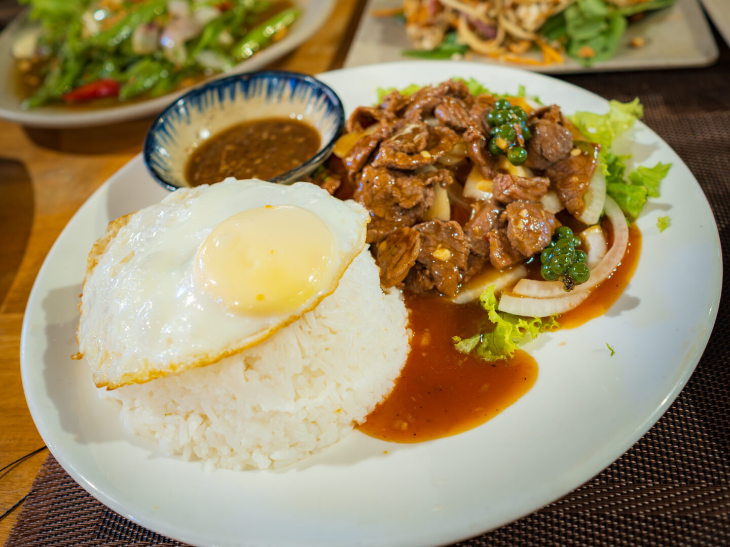 カンボジアのステーキ「ロックラック」には私がカンボジアで絶対に食べたいと思っていた「生胡椒」が添えられています。