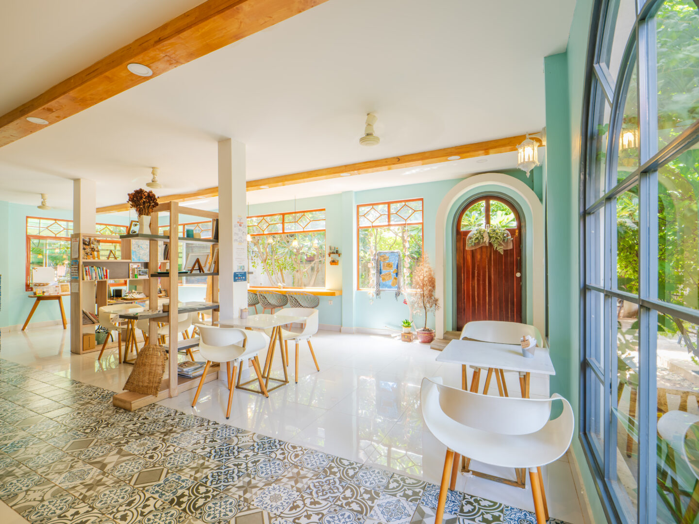 カフェでは胡椒を使った料理を楽しむことができ、観光でカンボジアを訪れている日本人のお客さんも多いです。近所に小学校があり学生たちの憩いの場にもなっています。