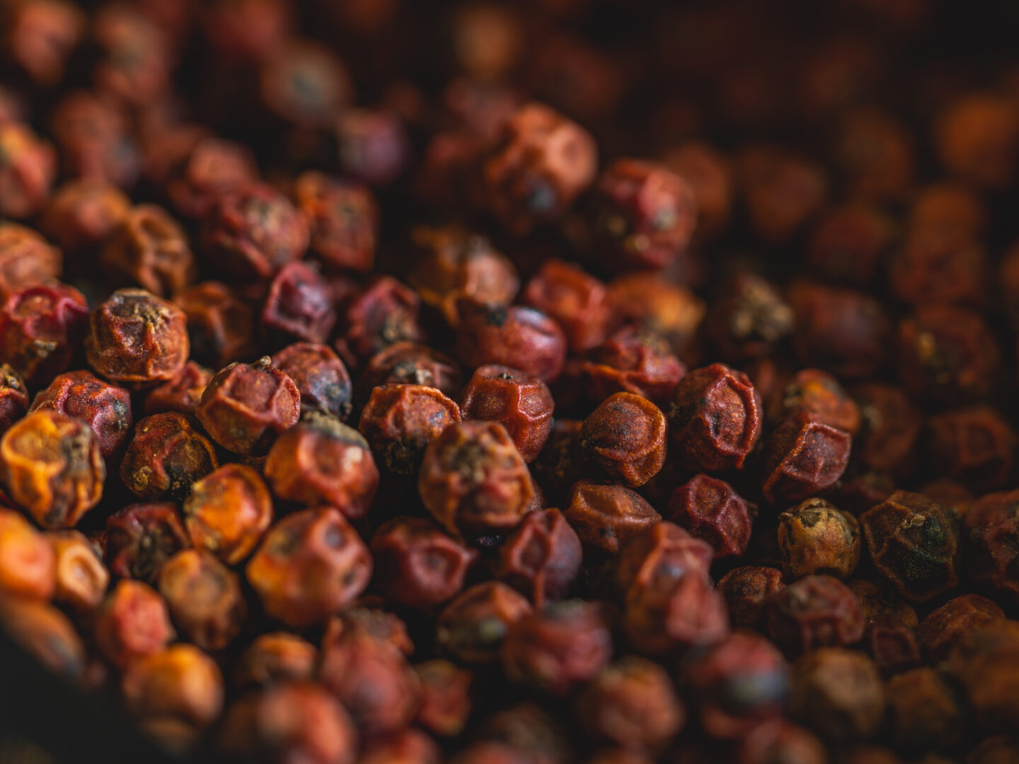赤胡椒のホールを60mmマクロで撮影。胡椒の実はかなり小さいので今回はマクロレンズを持参しました。赤胡椒のディテールが肉眼で見た以上に描写されています。