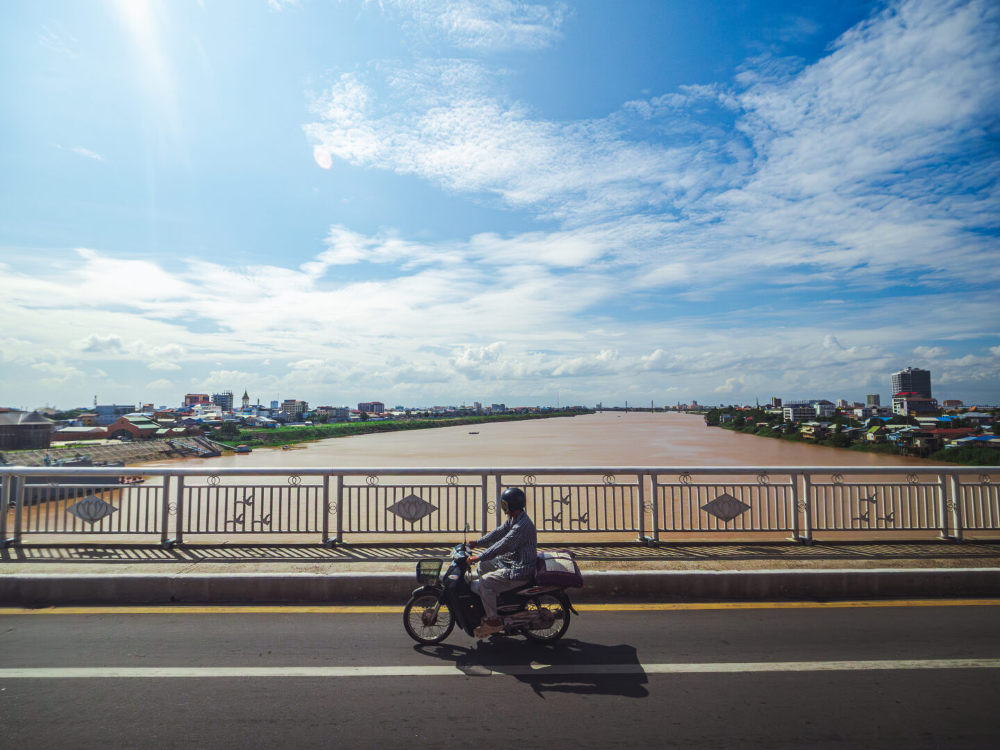 首都プノンペンに入りトンレ・サップ川に架かる「日本友好橋(チュルイチョンバー橋)」を渡ります。8−25mm PROでなければ収まりきらなかった一枚です。シェムリアップを出発してから約6時間、ずーっと車窓からの景色を撮影していました…笑