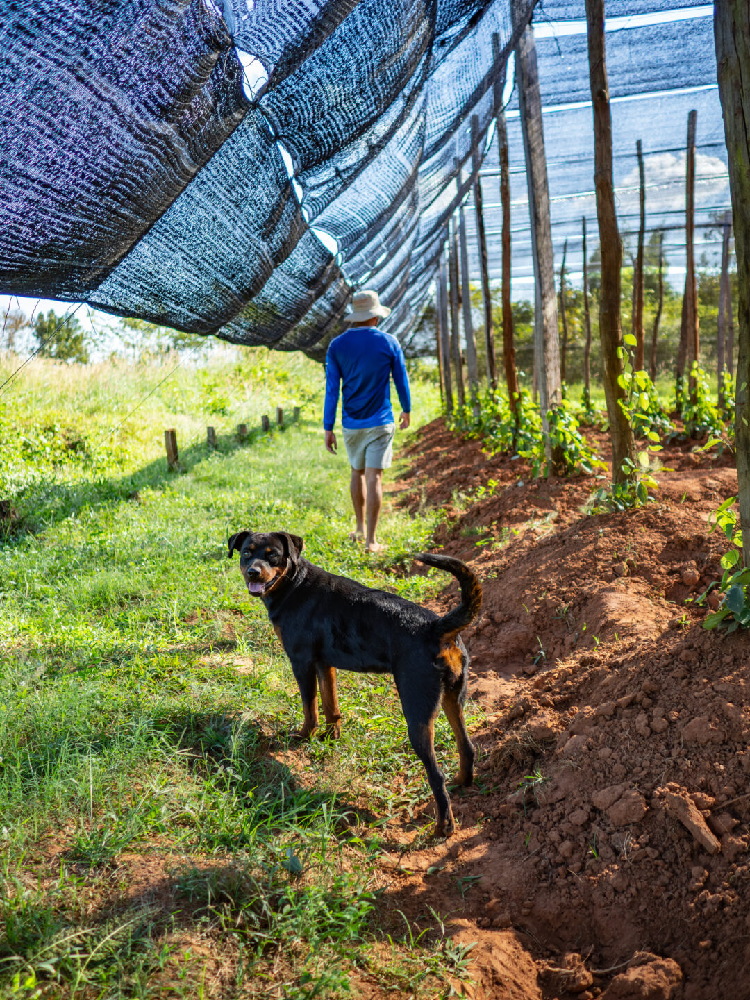 牧羊犬ならぬ「胡椒犬」が、 畑まで案内してくれます。ちゃんとついてきているか気になるのか、 途中で何度もこちらを振り返って確認してくれます。