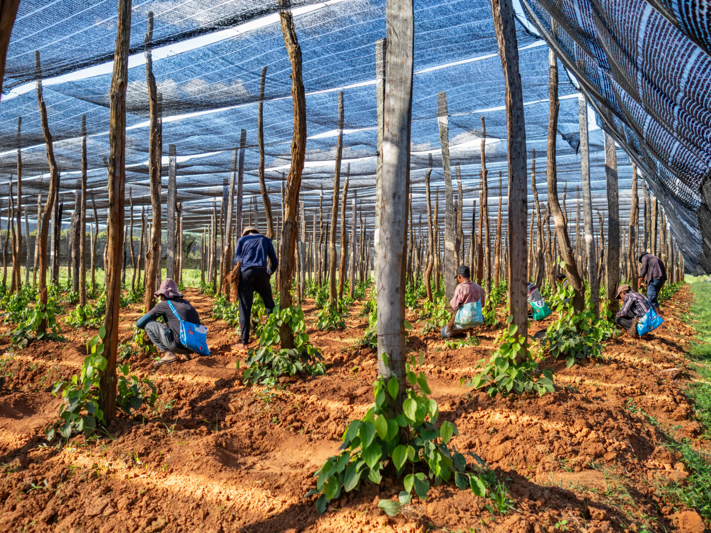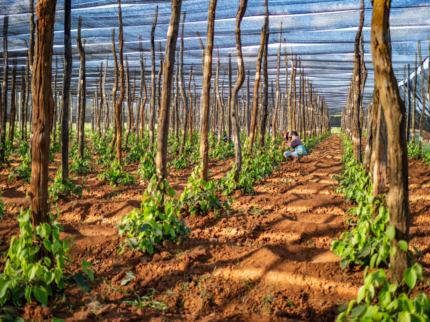 これはまだ胡椒畑のほんの一部にすぎず、 実際にはこの何倍もの広さの畑を、 職人さんたちが管理しています。