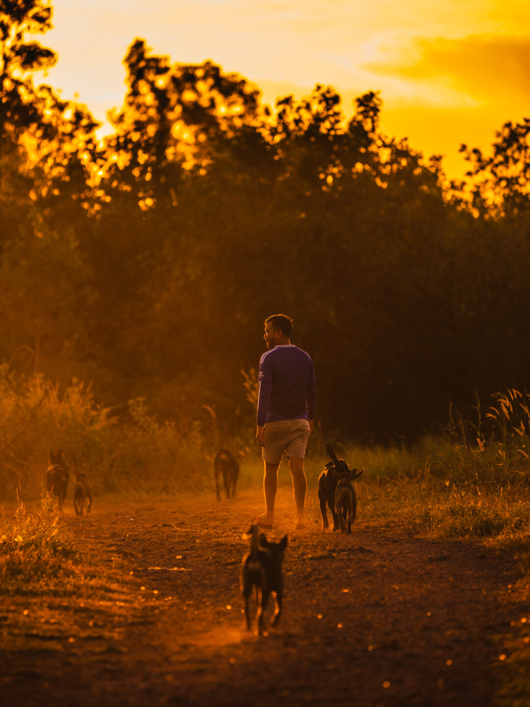 胡椒畑のリーダー、 レアサーさん。 夕方になると犬たちを引き連れて散歩に出かけます。 この時間帯は犬たちのテンションも最高潮。