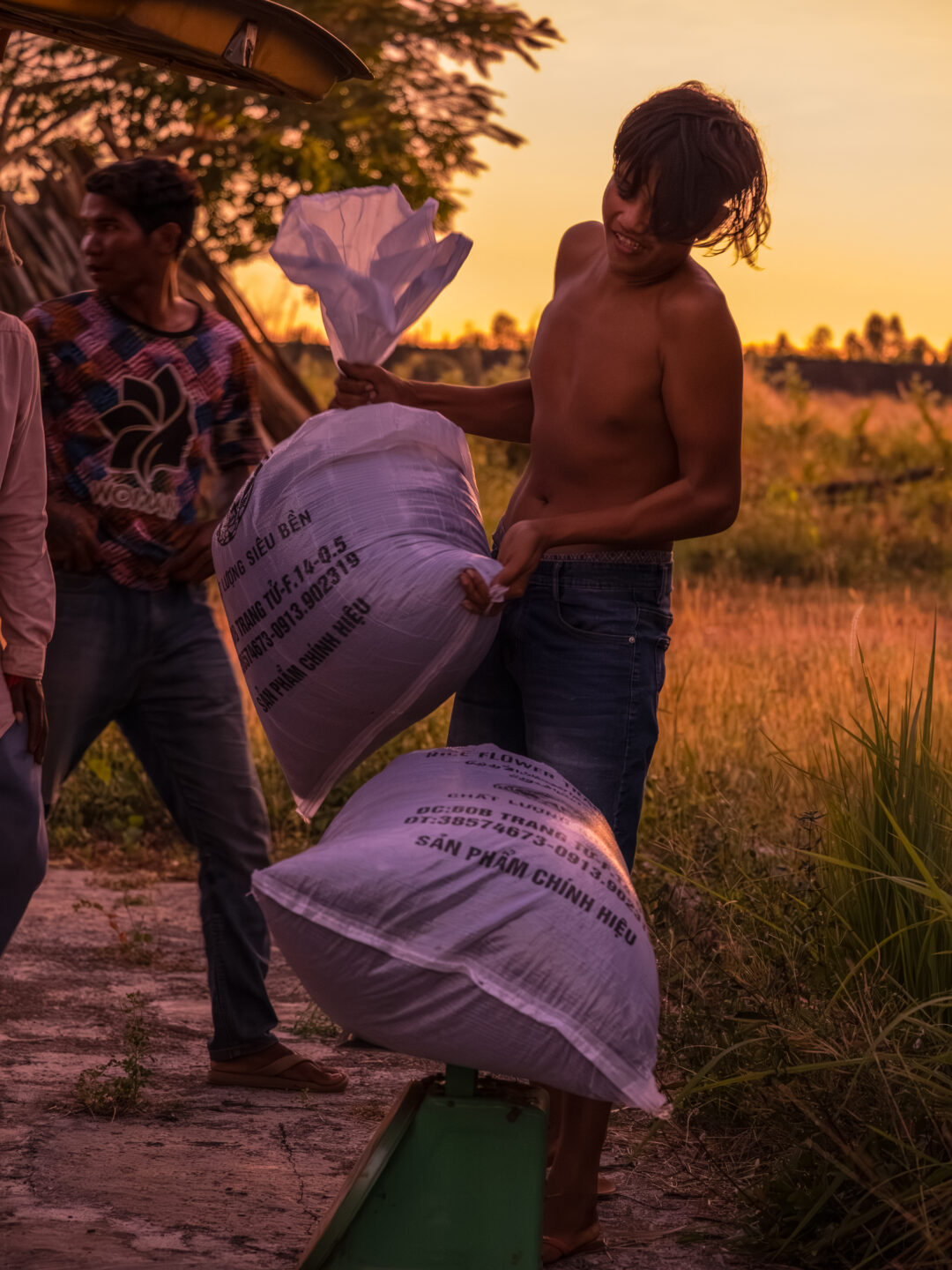 乾季の胡椒畑は雨季とはまた違った表情で、 職人さんの仕事内容も違えば胡椒の木の質感も違います。赤道に近い国なので日本の様な四季はないのですが、 雨季と乾季でしっかりとメリハリを感じました。前回の雨季のカンボジアではOMカメラの防滴性能に助けられましたが、 乾季は雨季よりも土煙や土埃が多いので防塵性能に助けられています。また、 小型軽量なOM-3とOM-5 Mark IIのおかげで取材もスムーズで、 新製品の50-200mmPROを持ってきたので前回とはまた違った瞬間を切り取ることができました。
