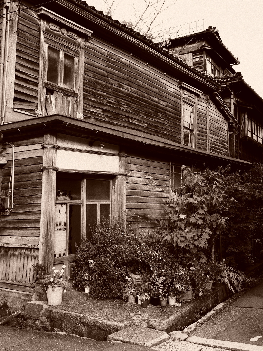 金沢散策中に見つけた古いおうちは既に空き家になっているようで、その佇まいと時の経過を伝えるにはセピアや紫を選ぶのも良さそうです。
