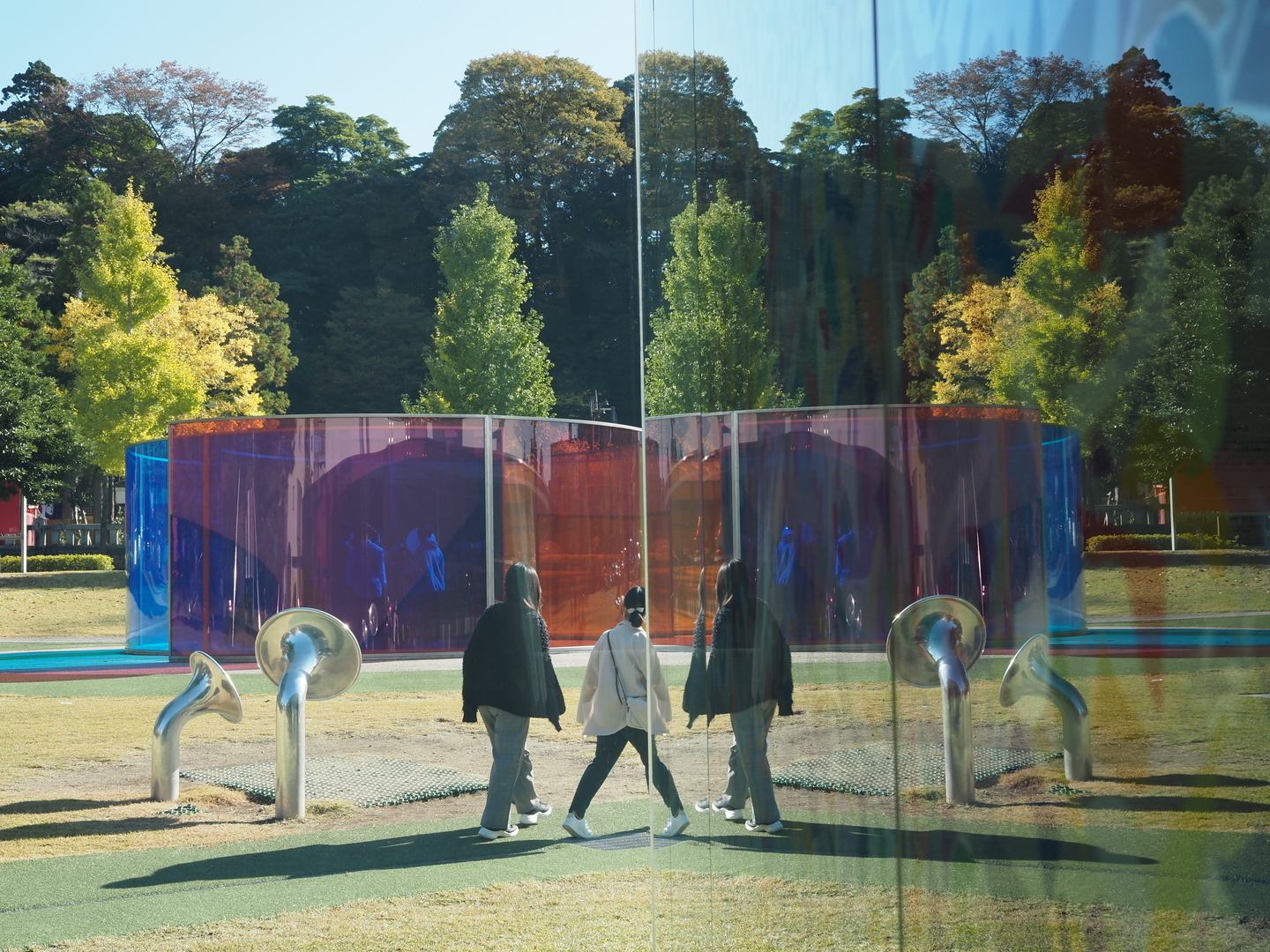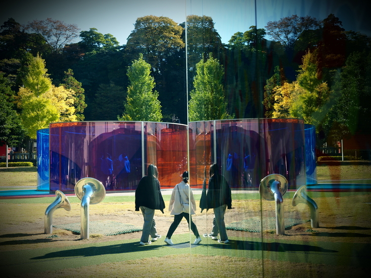 金沢21世紀美術館を訪れた際にふと外に目をやると、ちょうど映り込みを利用することで通り過ぎる人がまるで異世界に吸い込まれるようになることを発見。カラープロファイル3で彩度を上げてハイライト&シャドウコントロールでコントラストを高くしつつ、周囲は暗く落として視線を中央に誘導するように調整しました。