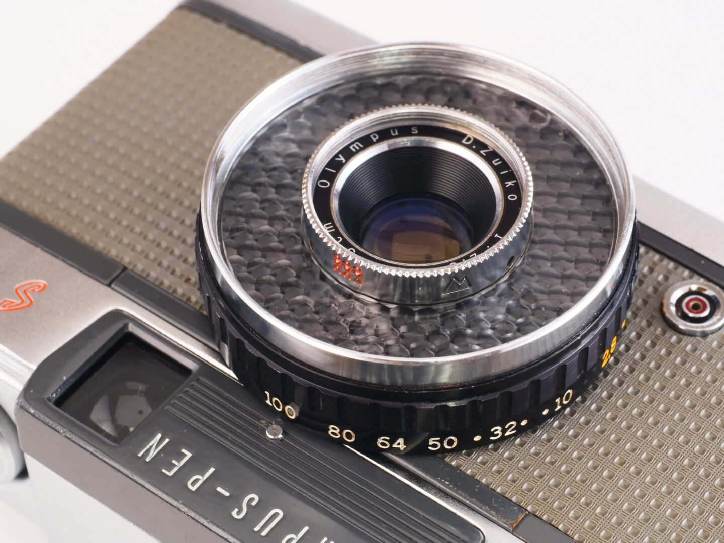 そもそもペンEEシリーズとは、先行販売されて空前のヒット作となったオリンパスペンの需要をさらに拡大することを目的として、誰でもシャッターボタンを押すだけで写真が撮れるカメラを目指したものでした。セレン光電池を用いたEE(エレクトリック・アイ)機構と固定焦点のレンズで写真撮影の技術を知らない層にアピールしていたのですが、撮影経験が豊富な米谷さんにとっては、固定焦点では物足りない部分があったのだと思います。そこでEESではペンEEからグレードアップして開放F2.8となったズイコーレンズの被写界深度の浅さを口実として、ピントを任意の位置に動かせる仕様にしています。映画の中でもシャルロットはレンズ先端を操作する仕草を見せていて、ジェーンとの距離感をしっかり把握しながら撮影しているのが印象的でした。