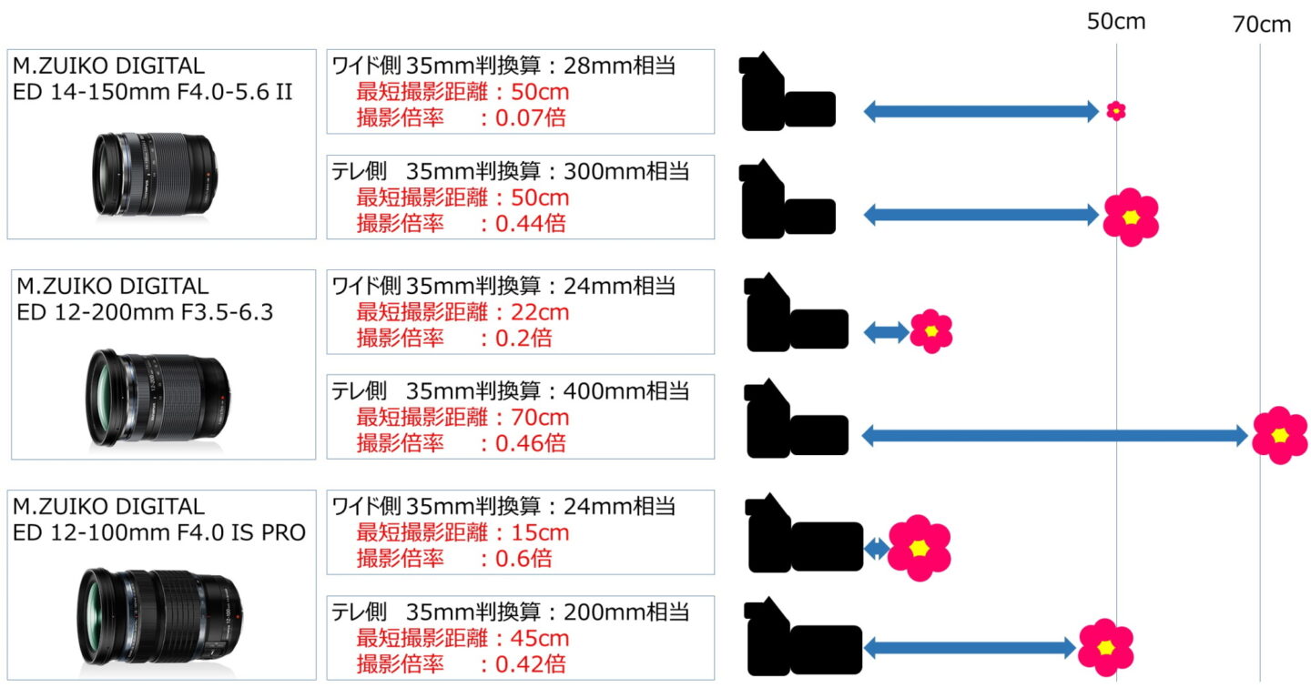 広角側で22cm、望遠側で70cmまで近寄れることで広がる、マイクロフォーサーズ特有の撮影領域。