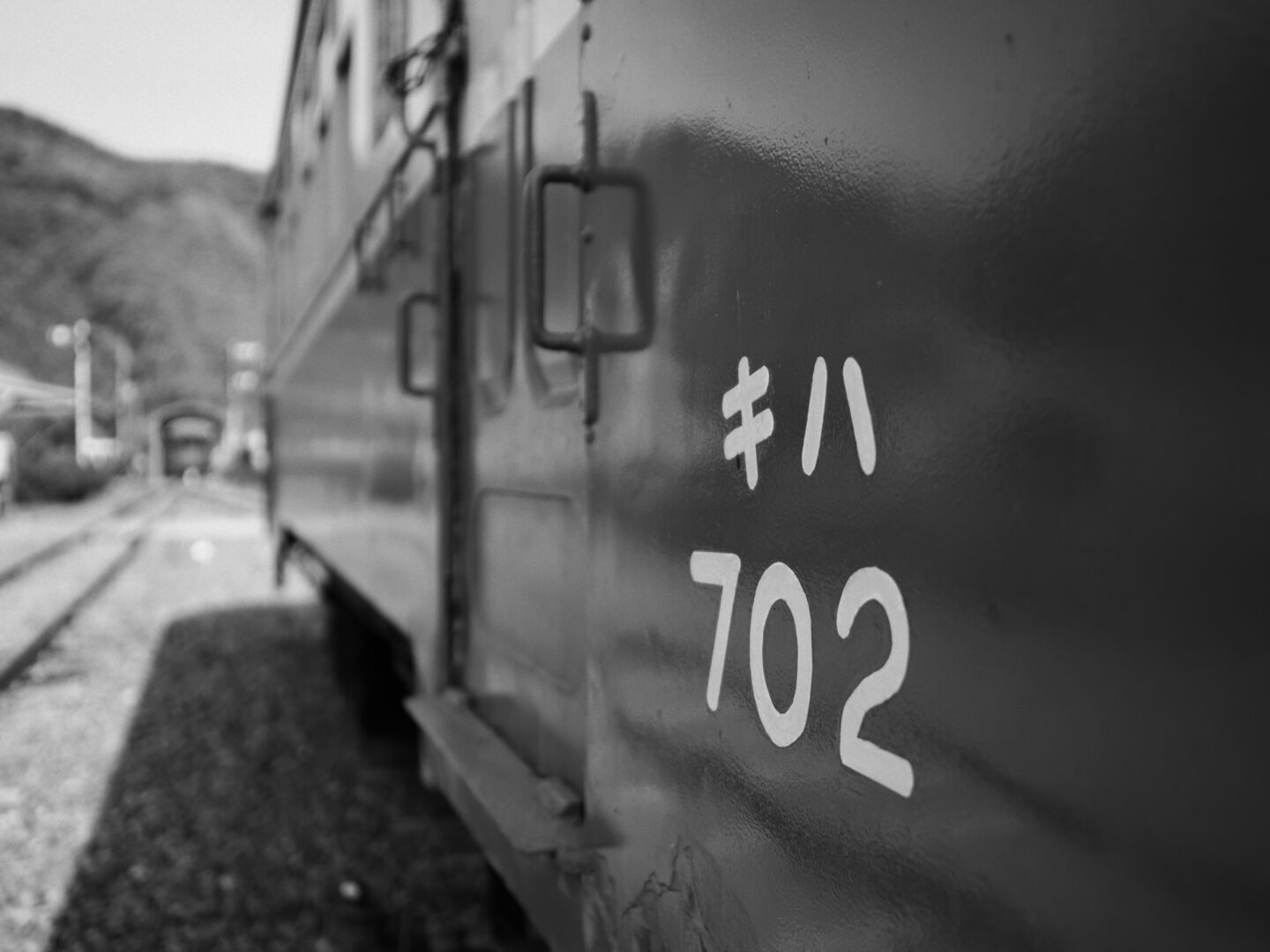 では、実際にどのようにモノクロフィルムのような表現に近づけていくのか。OM-3のモノクロプロファイルコントロールを使うことで、まるで時代を遡るような写真は撮れるのか。OM-3を手にして撮影に出かけてみました。2025年2月、訪れたのは、岡山県美咲町にある柵原ふれあい鉱山公園。1991年に廃止となった旧片上鉄道の吉ヶ原駅舎と操車場跡を活用して整備された公園で、昭和30年代の鉱山の様子や暮らしが再現されています。駅舎や車両も当時の姿のまま保存されており、今もなお時代の空気が色濃く残る場所です。