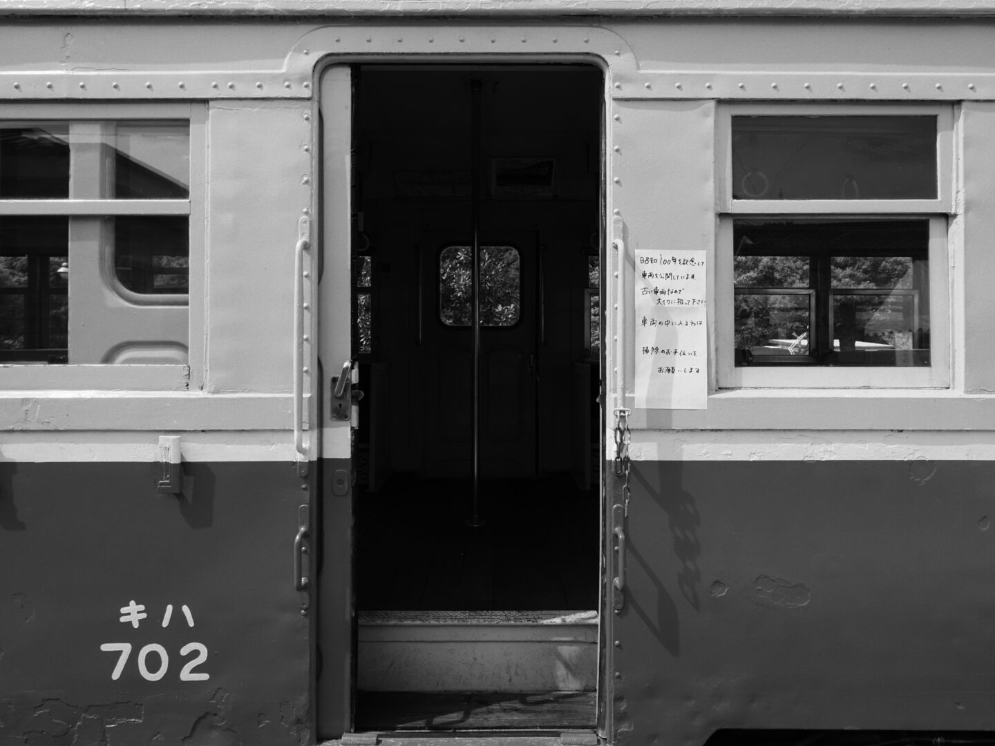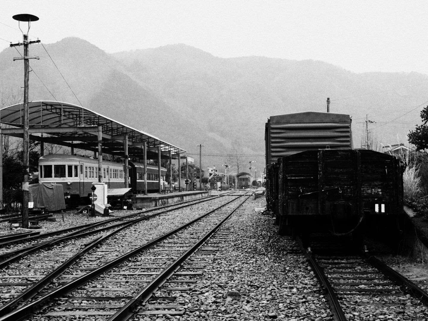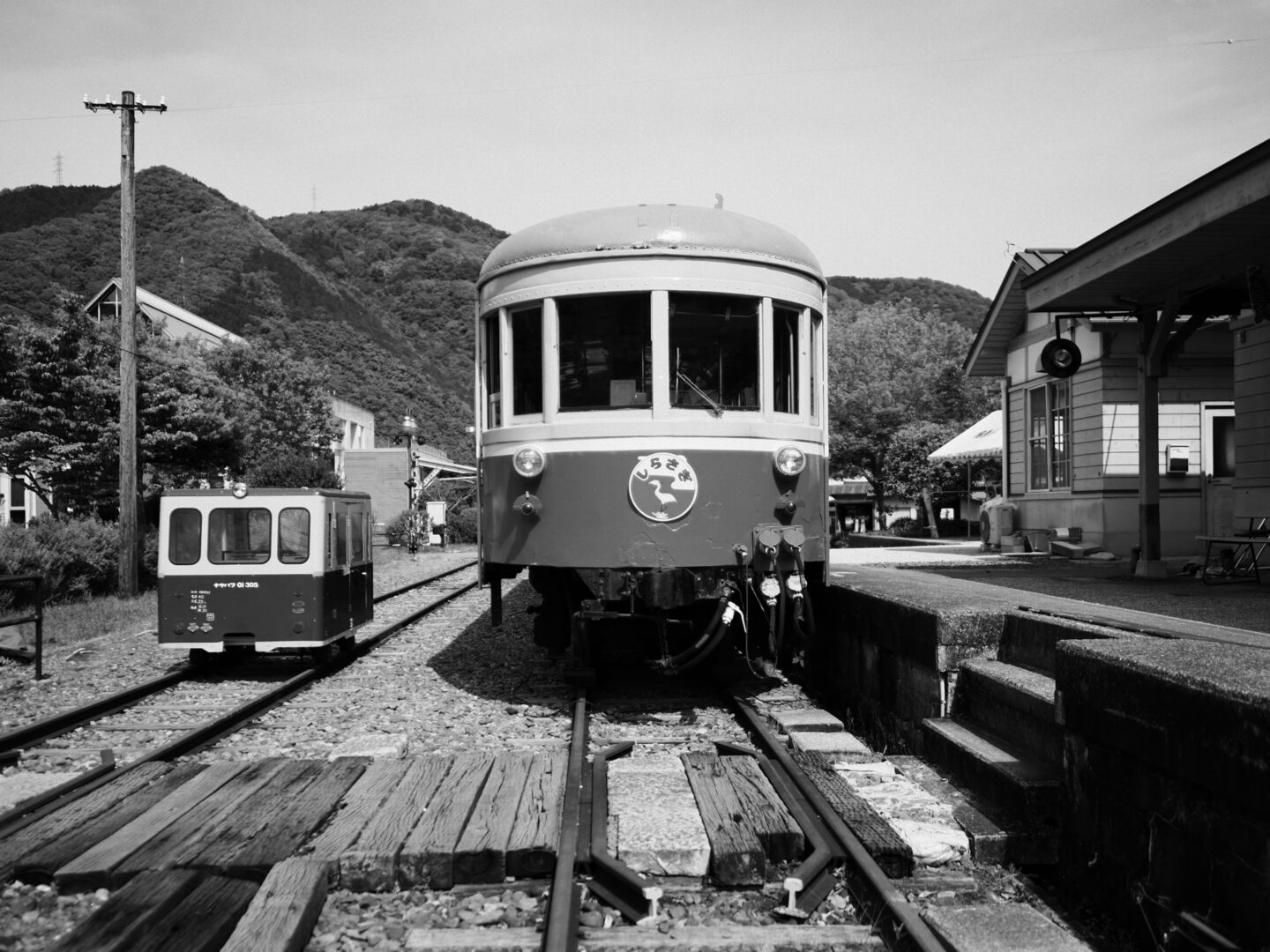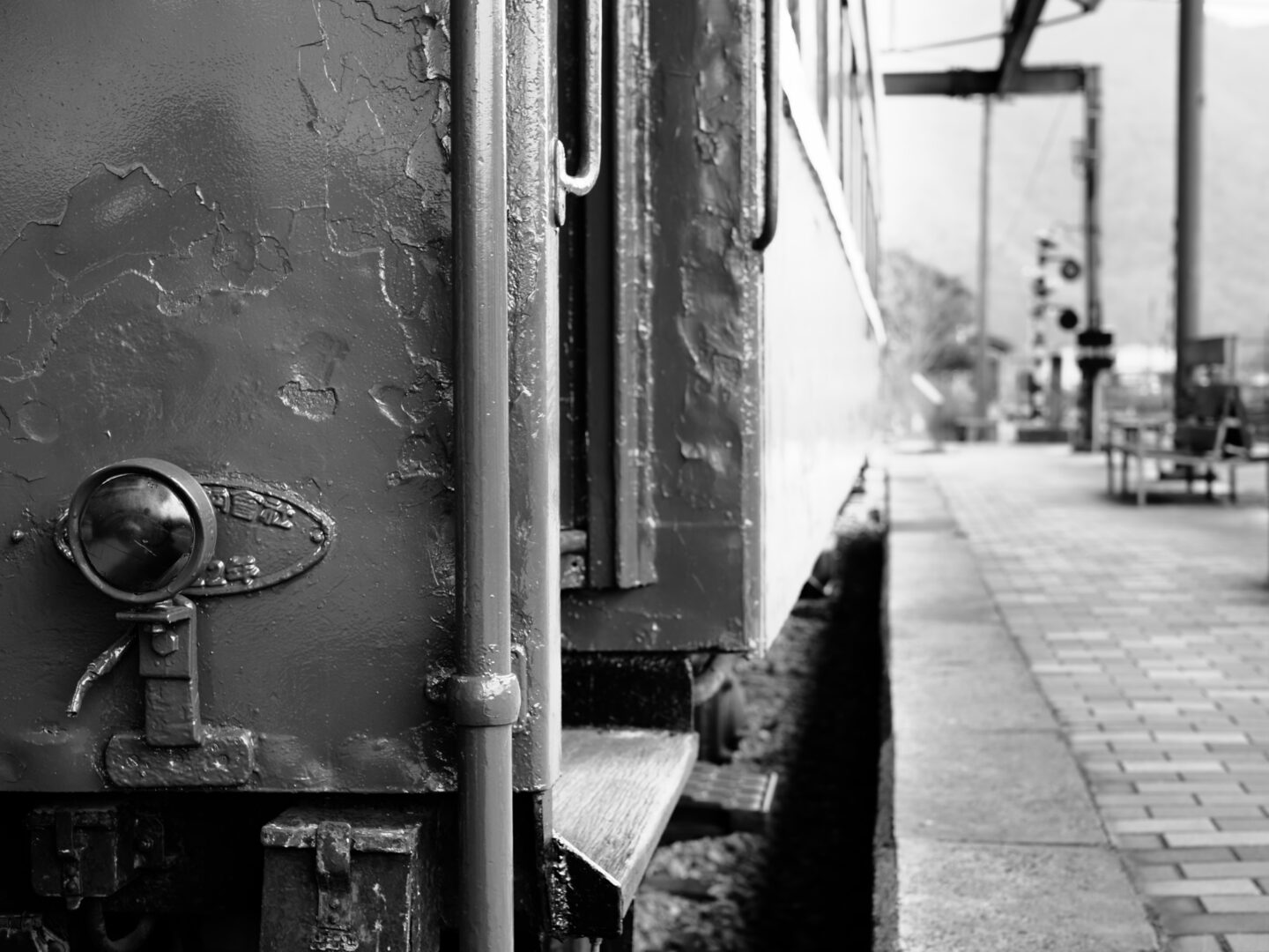 では、実際にどのようにモノクロフィルムのような表現に近づけていくのか。OM-3のモノクロプロファイルコントロールを使うことで、まるで時代を遡るような写真は撮れるのか。OM-3を手にして撮影に出かけてみました。2025年2月、訪れたのは、岡山県美咲町にある柵原ふれあい鉱山公園。1991年に廃止となった旧片上鉄道の吉ヶ原駅舎と操車場跡を活用して整備された公園で、昭和30年代の鉱山の様子や暮らしが再現されています。駅舎や車両も当時の姿のまま保存されており、今もなお時代の空気が色濃く残る場所です。