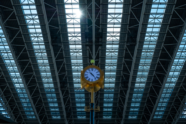 広角側12mm画角でいつもテスト撮影を行う、JR大阪駅の待ち合わせ場所「時空の広場」にて。太陽を画面内に入れて撮影しているが、フレアやゴーストによる画質低下も見られず良好な画質だ。レンズのコーティングとGH5IIのセンサーに施されたARコーティングの効果が現れた1枚だ。