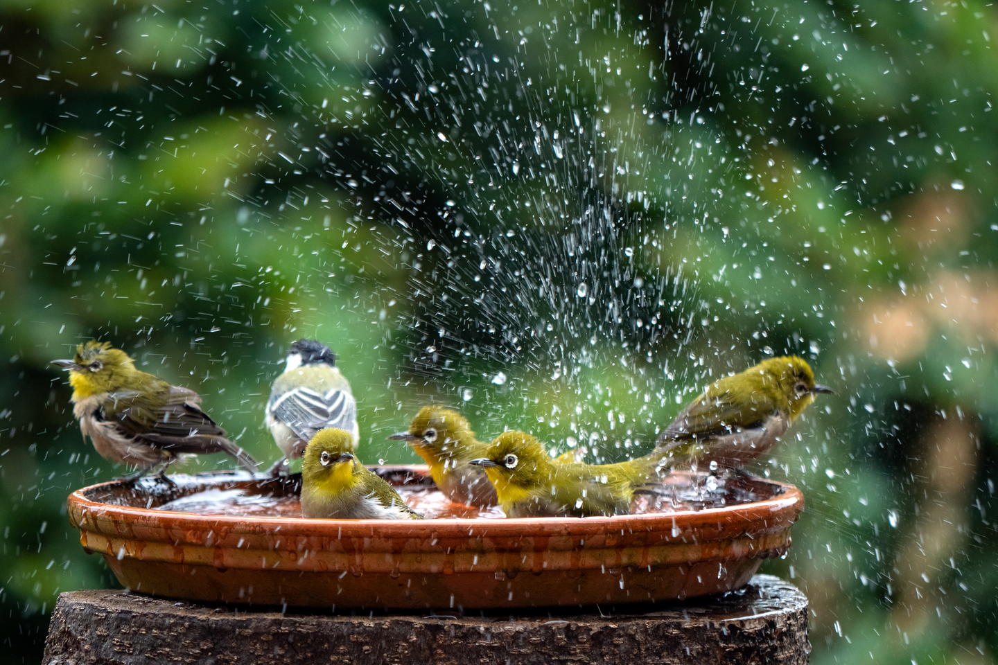 雨交じりの曇り空で野鳥撮影には少し厳しいお天気であった。しかし、GH5IIと100-300mm超望遠ズームの組み合わせなら手ブレ補正が優秀なので手持ち撮影でも狙った通りの撮影ができた。背景の緑を鮮やかに写したかったのでフォトスタイルを風景に設定して撮影した。