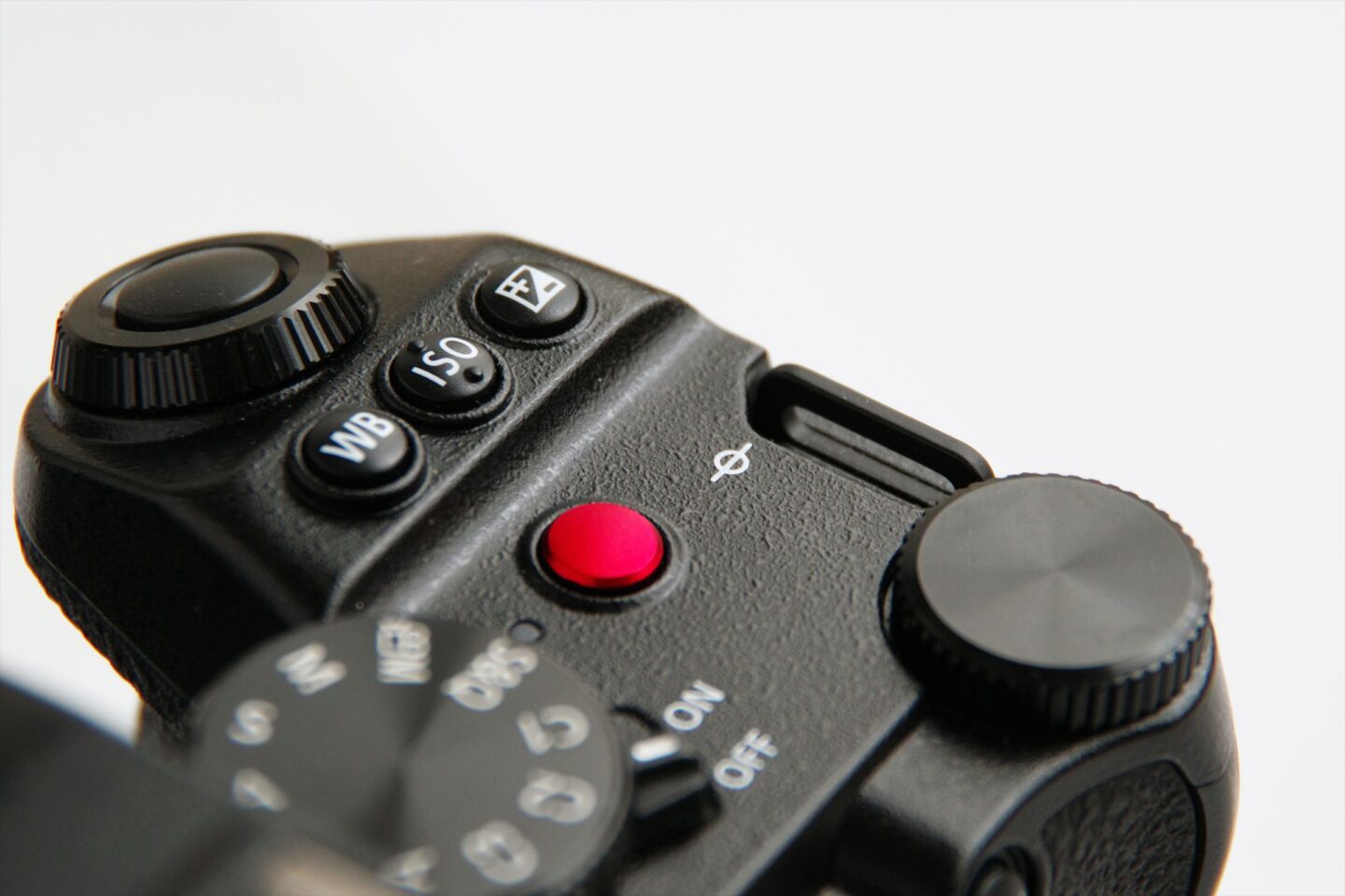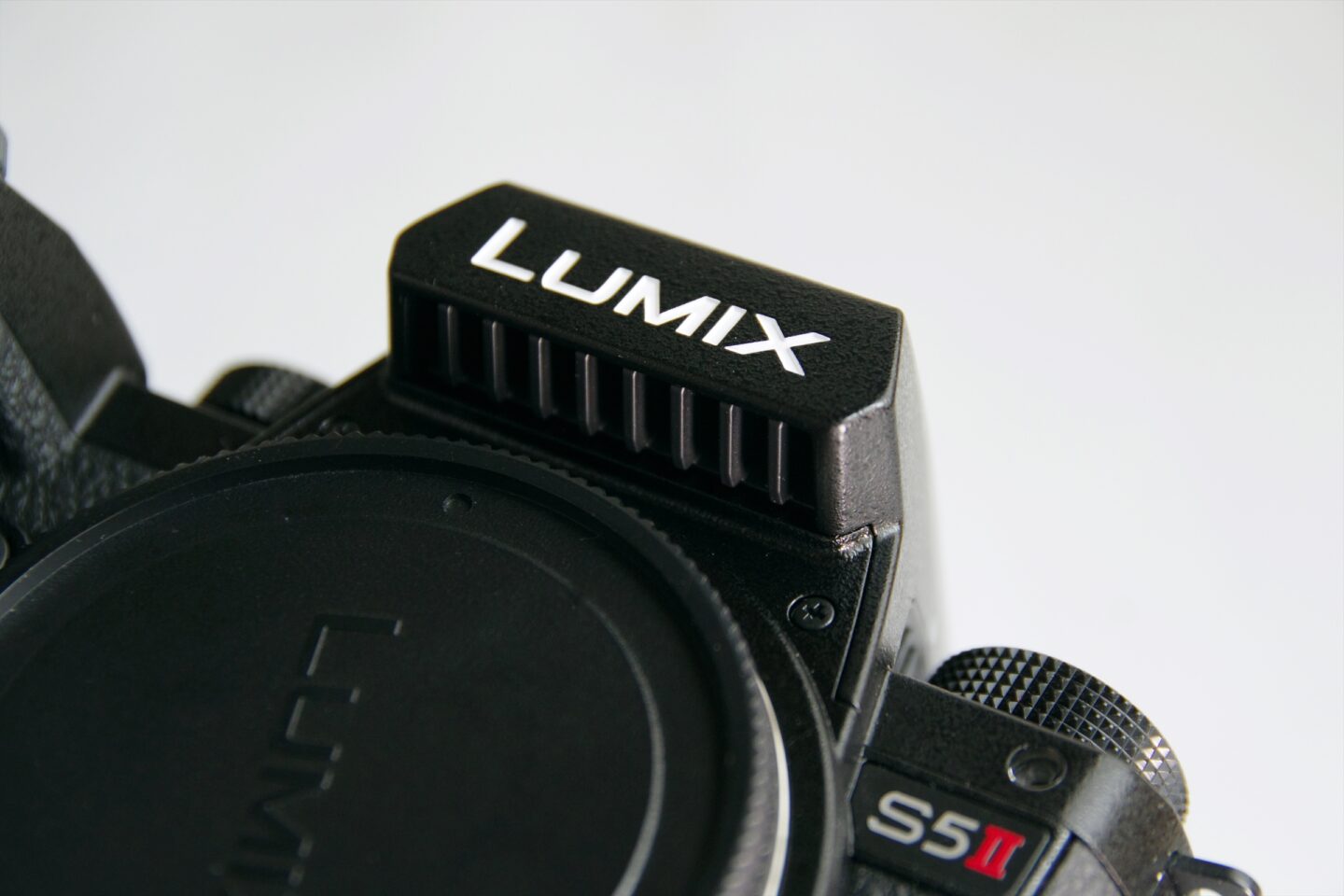 ボディデザインはLUMIX S5と比較しても大きな差はないものの、天面から見ると違いが分かります。マウント部が前面に突出しているのが特徴で、ここにはクーリングファンが内蔵され、長時間動画撮影時の熱対策ができるようになりました。グリップ形状も改善され、片手でもしっかりと握りやすく安定した撮影に臨めます。