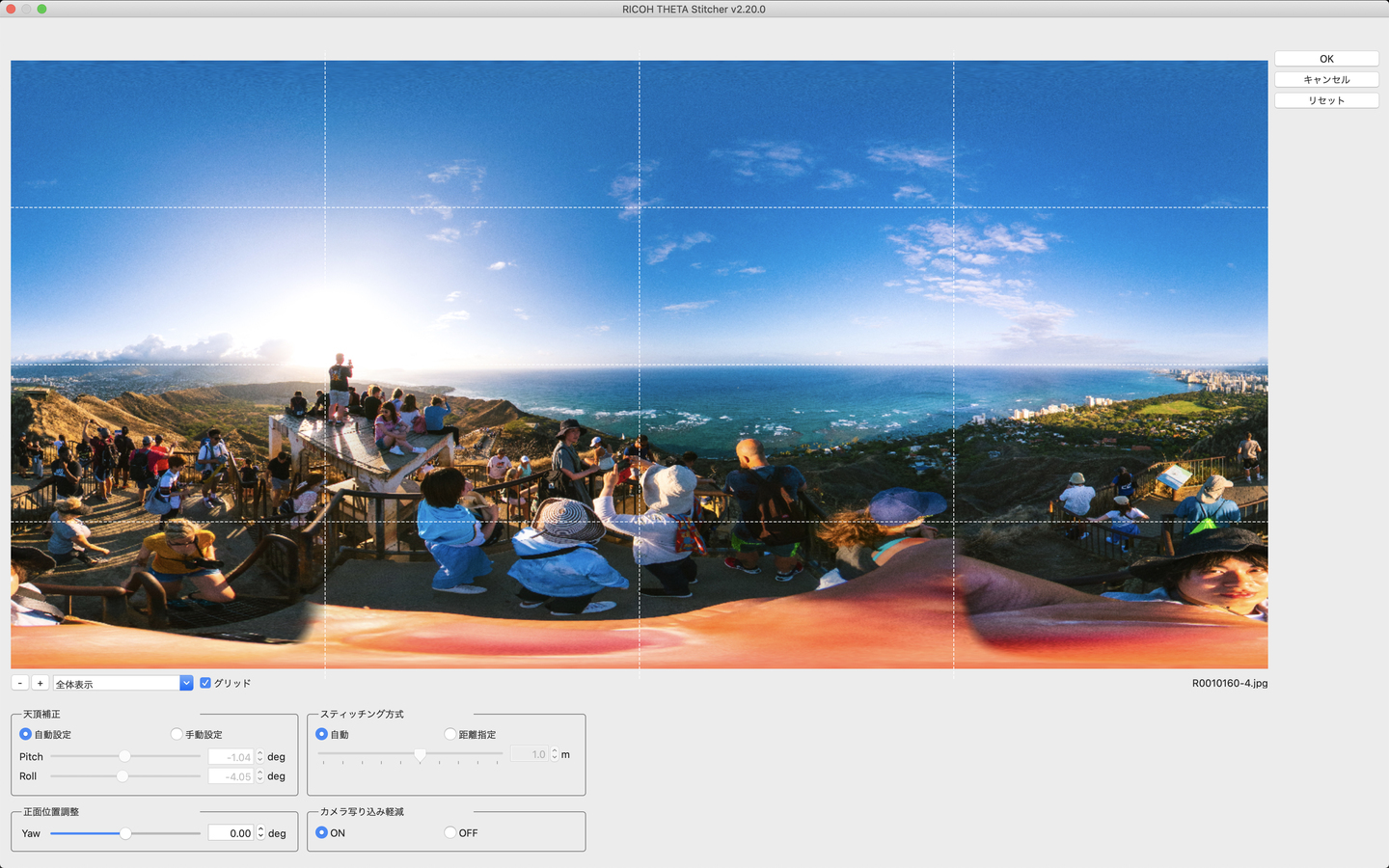 ただし、DNGファイルの場合前後の写真データが繋がっていない状態での記録となるため、書き出し時にステッチング(写真データを繋ぐ)必要がある。写真データをステッチングするRICOH THETA StitcherというアプリがRICOHより公開されているため、RAW現像を考えている場合はあらかじめダウンロードしておこう。
