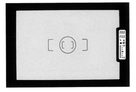 ファインダー内表示はTv(シャッター速度)値、Av(絞り)値、マニュアル露出時&露出補正時バーグラフ、露出補正マーク、フォーカス表示、ストロボ情報マーク、メモリーロックマーク、AFフレームとなっており、こちらもシンプルでわかりやすい表示です。