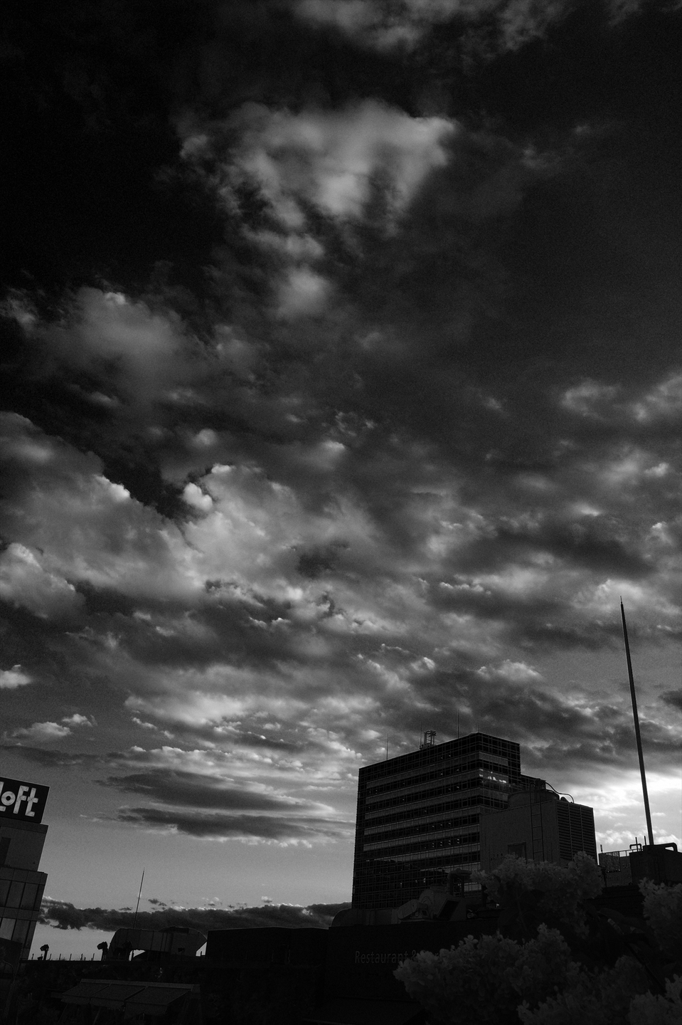 晴天時のハードモノトーンは青空が暗く落ち込み、コントラストも高くどっしりとした表現に。
