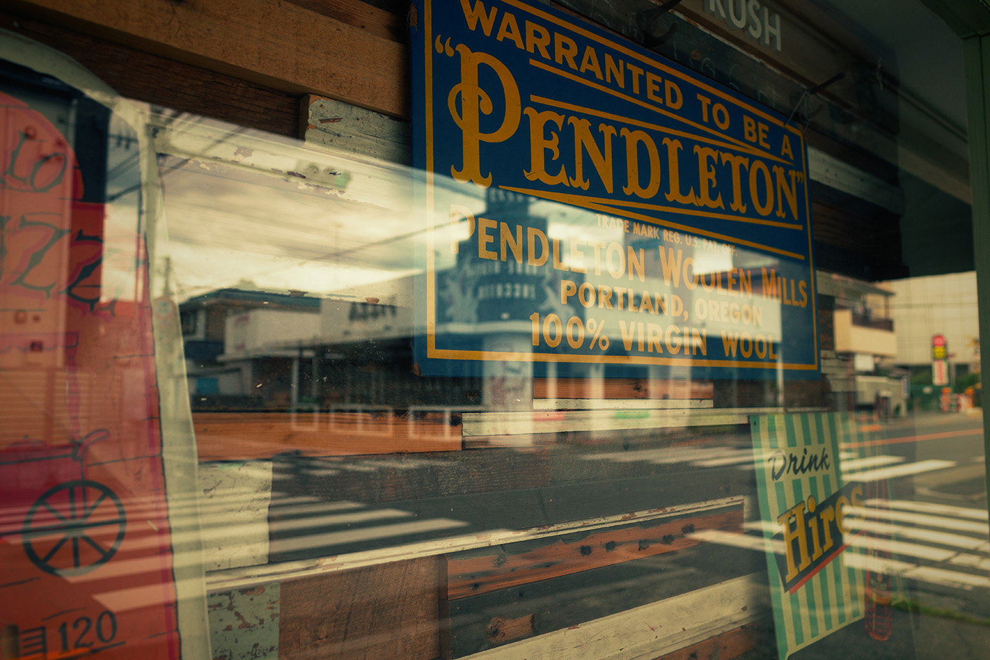 味わいのある商店街の少しごちゃごちゃした印象もこの強さがまとめてくれます。