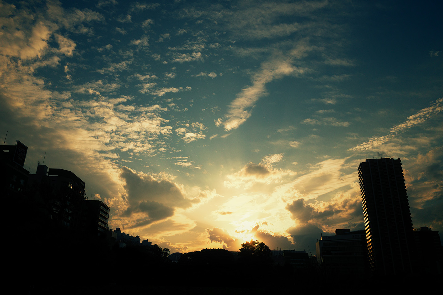 色調をYにしている効果で夕焼けの色は濃く、空の青がエメラルドグリーンのようになります。