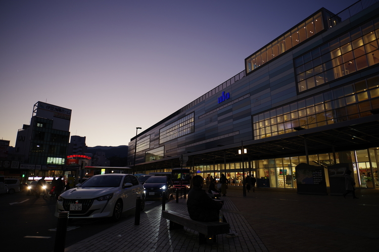 熱海駅の夕景です。「HD PENTAX-D FA 21mmF2.4ED Limited DC WR」の明るさと「K-1 Mark II」のボディ内手ブレ補正があれば、薄暮のシーンも気軽に撮影できますね。空のグラデーションが美しく撮れました。