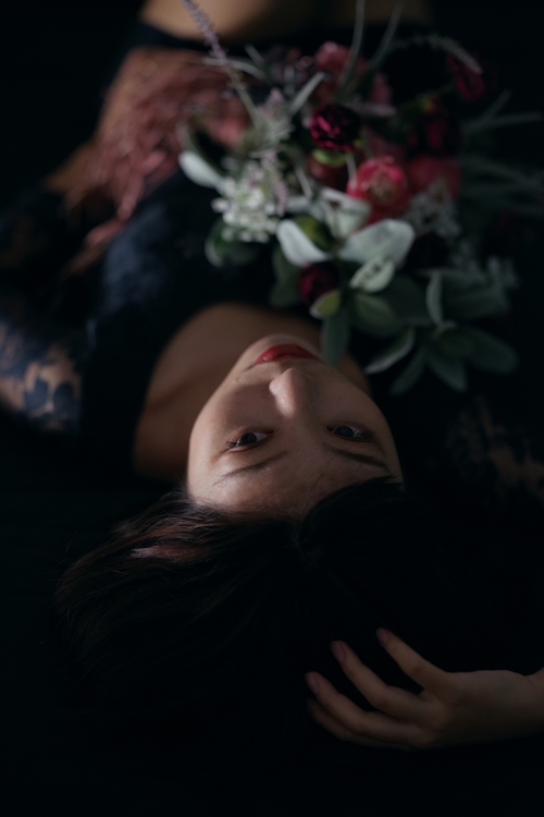 小型のLED照明1灯のみで、自身の手元でレフ板を支えながら撮影。画面に奥行きをもたせつつ、中望遠の程よい圧縮効果を狙いました。露出をマイナスにて撮影していますが、黒つぶれすることなくしっかりと細部のディテールも写し込みます。