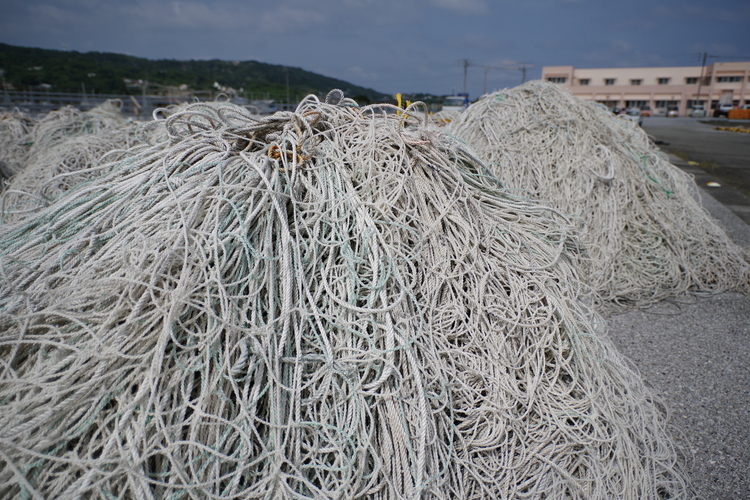漁港にあった漁網に寄ってみました。F4ならAPS-Cフォーマットでもこれだけ背景をぼかせます。絞り開放ながら網の様子をキチンと解像していますね。