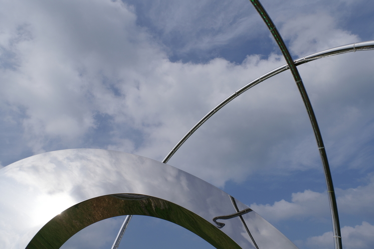 メタリックなモニュメントの描写も素晴らしいですね。金属の質感と写り込み、そして雲の様子まで安定した写りだと感じます。心地よい広さを表現できるプライムレンズだと言えるでしょう。