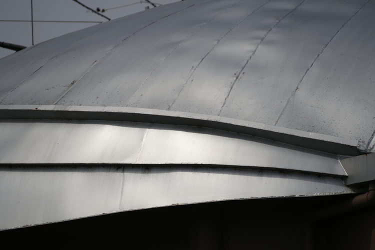 太陽光を鈍く反射する建物を撮りました。ハイライト部といい微妙なグラデーションと凹凸のひさし部分の質感表現が見事だと感じます。メリハリがあり現代的な絵作りですね。