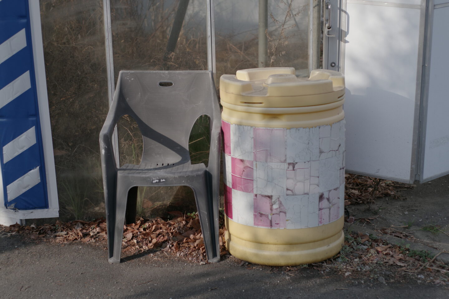 もちろん絞っての写りも現代的で好ましいものです。工事現場に置かれていた椅子とタンクを撮ったものですが、それぞれの素材感が伝わってくるようなリアルな描写がいいですね。「カスタムイメージ」で遊ぶのもいいでしょう。