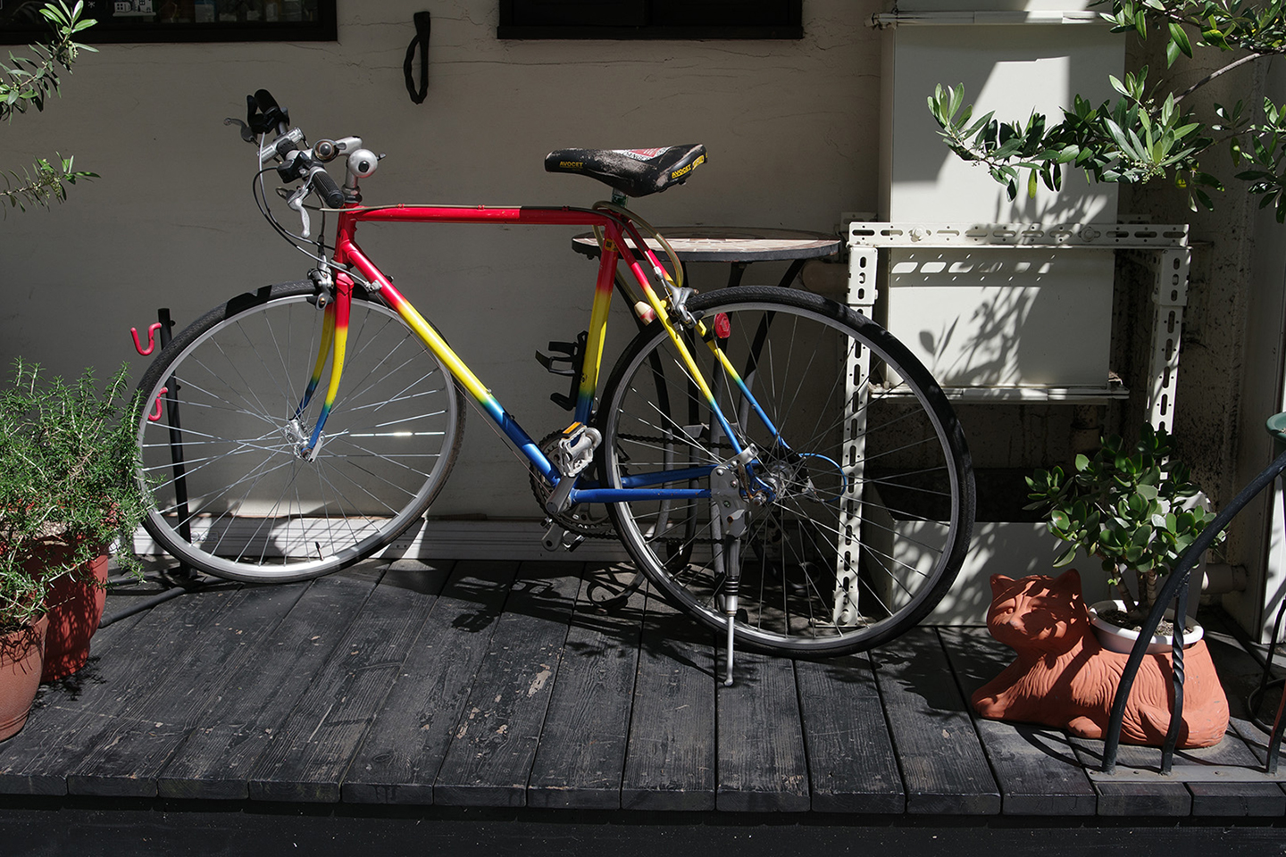 カラーで見れば上の写真の方がこの自転車の魅力が伝わります。モノクロにしたときは下の方が暗部の締まりが良くモノクロらしい雰囲気が上がっています。この違いが色を意識するか、光を意識するかの違いです。