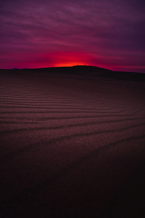 砂丘に這いつくばる様にして光学ファインダーを覗いて撮影した。陽が沈んで空が焼けたその光をしっかり目に焼き付けながらシャッターを切った。