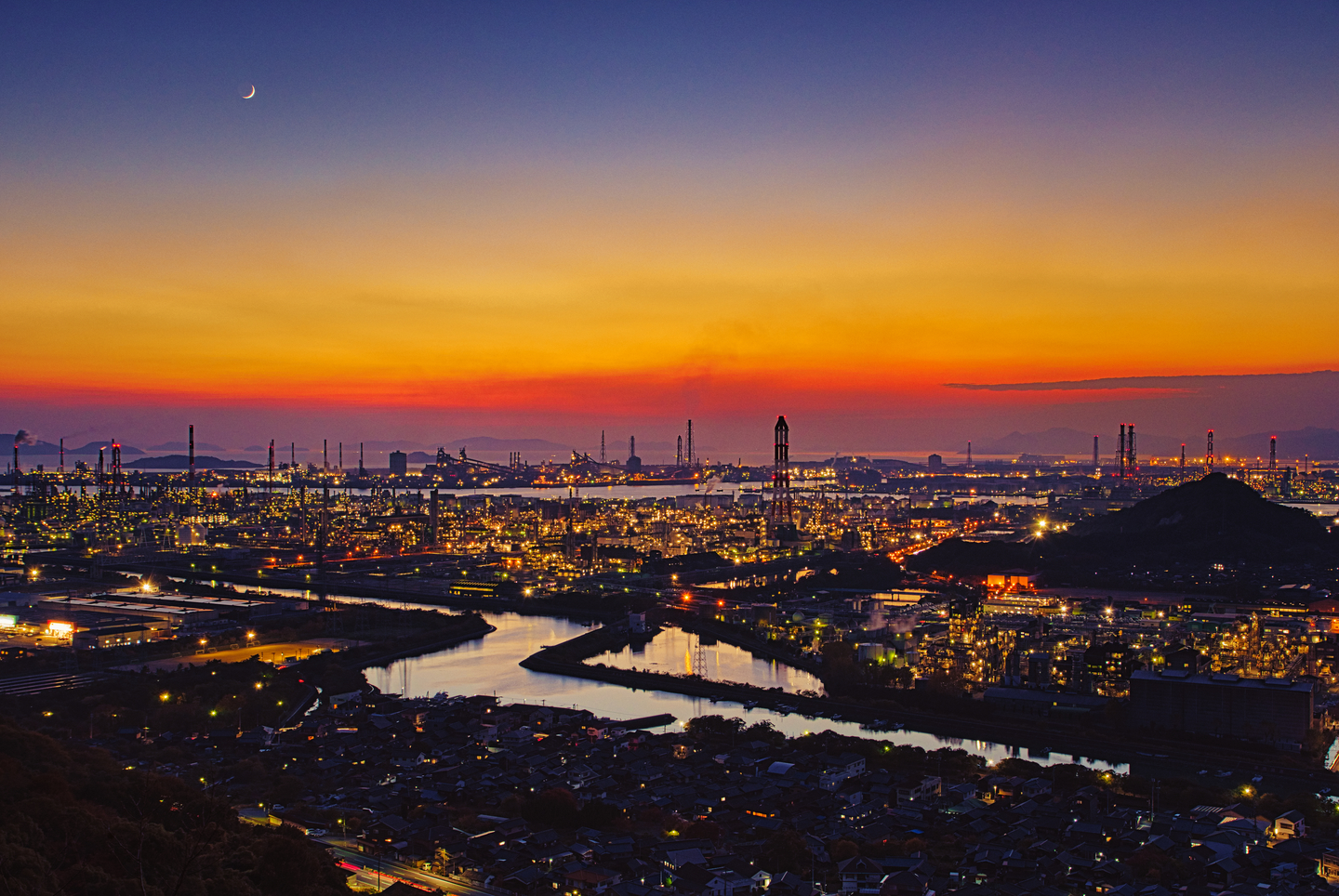 コンビナートの夕日と夕焼けを撮影。K-3 Mark IIIはレンズの性能をさらに引き出してくれる。低感度撮影時の解像感はついつい等倍で見たくなるほど。高感度の画質も素晴らしいが低感度で撮影した時の画質にも注目して欲しい。