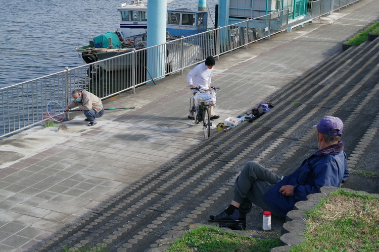 川沿いを歩いていると男性が声を上げているシーンに遭遇しました。見事なサイズの鯛を釣り上げたようです。大物ですね。「K-3 Mark III」を向けると、居合わせた3人が思い思いの動きをしているのが面白く、連続でシャッターを切りました。「K-3 Mark III」は起動もオートフォーカスも速く、連写スピードも高速なのでこのようなシチュエーションでも多くのカットを撮ることができます。決定的瞬間を逃したくないのであれば、日頃からスナップ時には連写モードにしておくといいでしょう。1枚で止めたい場合はシャッターボタンから指を離せば済みます。