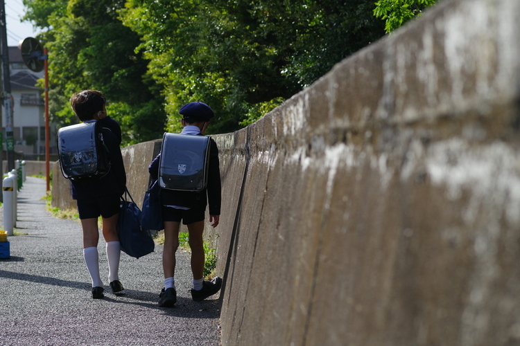 下校中でしょうか。ランドセルを背負った児童とすれ違いました。壁を蹴りながら二人で話しながら歩いています。その後ろ姿を狙いましたが、普通に立ったまま撮ると見下ろす感じになってしまうので、パッとしゃがんで子どもの目線で「K-3 Mark III」のシャッターを切りました。