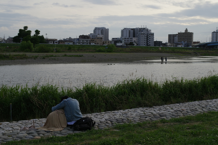 スナップ撮影の基本は「歩く」ことでしょう。現在はコロナ禍で遠出ができませんが、自宅近くの散歩でもカメラを持って行くと面白いシーンを見つけることができると思います。このカットは自宅近くの二子玉川・兵庫島公園で撮影したものです。曇り空でしたが夕暮れ時に川面近くでカップルが熱い抱擁を交わしています。対岸には水辺で遊ぶ3人の姿が見えました。その様子をバランスよく配置して「K-3 Mark III」で撮りました。