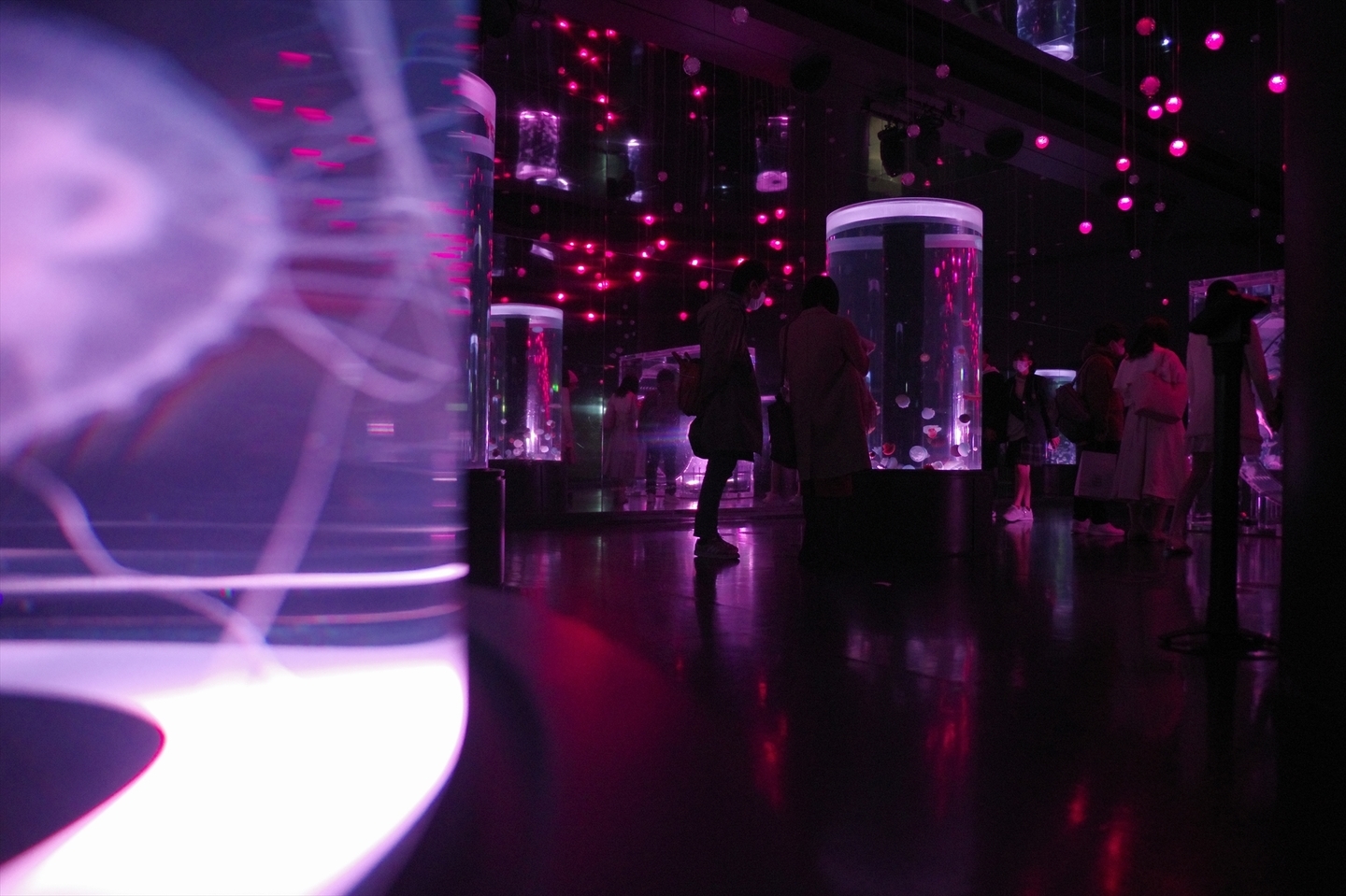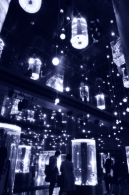 次にカスタムイメージをモノトーンの冷黒調(クールトーン)にし、光源が明るいものに効果的なソフトフィルターを使用してみました。水族館でありながら、プラネタリウムのようなイメージに仕上がっています。
