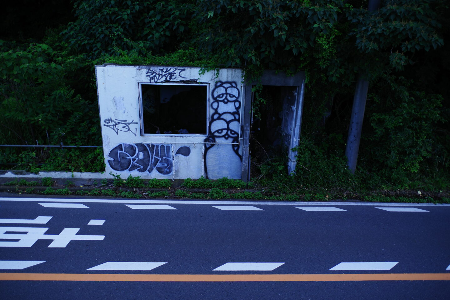 今度は道路沿いにある廃墟を撮ってみました。日陰だったのですが露出を切り詰めることによってアヤシい雰囲気のカットになりました。昔に高感度のポジフィルムをプラス2段増感して撮ったかのような感じが気に入りました。