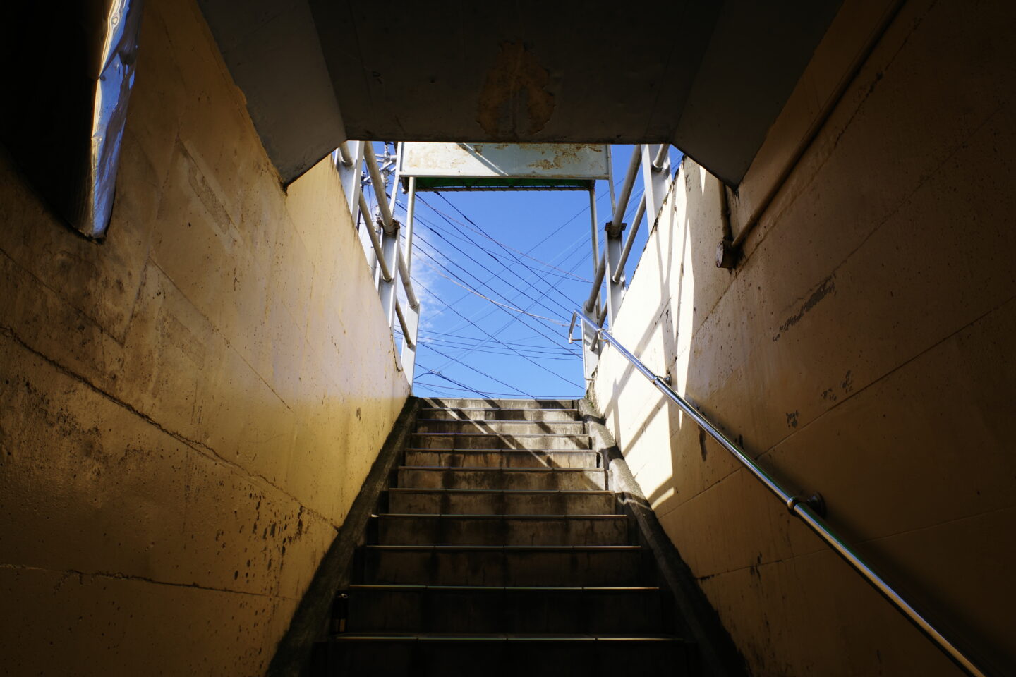 地下道から入口を見上げてみました。やはり青い空を入れることによって、このカスタムイメージ Special Edition「夏天(KATEN)」は夏らしさを増幅してくれます。パートナーレンズを選ぶ効果ですが、ワイドな眼を持ってシャッターを切る練習にもなりそうですね。