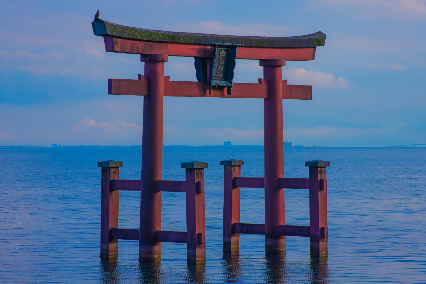 斜光がかかる時間の鳥居に露出を合わせて、全体的にアンダー気味かつ彩度を上げて撮影しました。結果、空と琵琶湖の青さが際立ち、傾いた陽の光が白い雲を一部オレンジ色に染めて、良い雰囲気で撮影出来ました。遠くを気持ちよさそうに滑るウェイクボードも良いアクセントになってくれました。対岸の遠景と波と雲の質感を出したくて絞りF16で撮影しましたが、回析の影響も少なく解像感がとても高く、発色も素晴らしいので風景撮影にも適したレンズだと思いました。