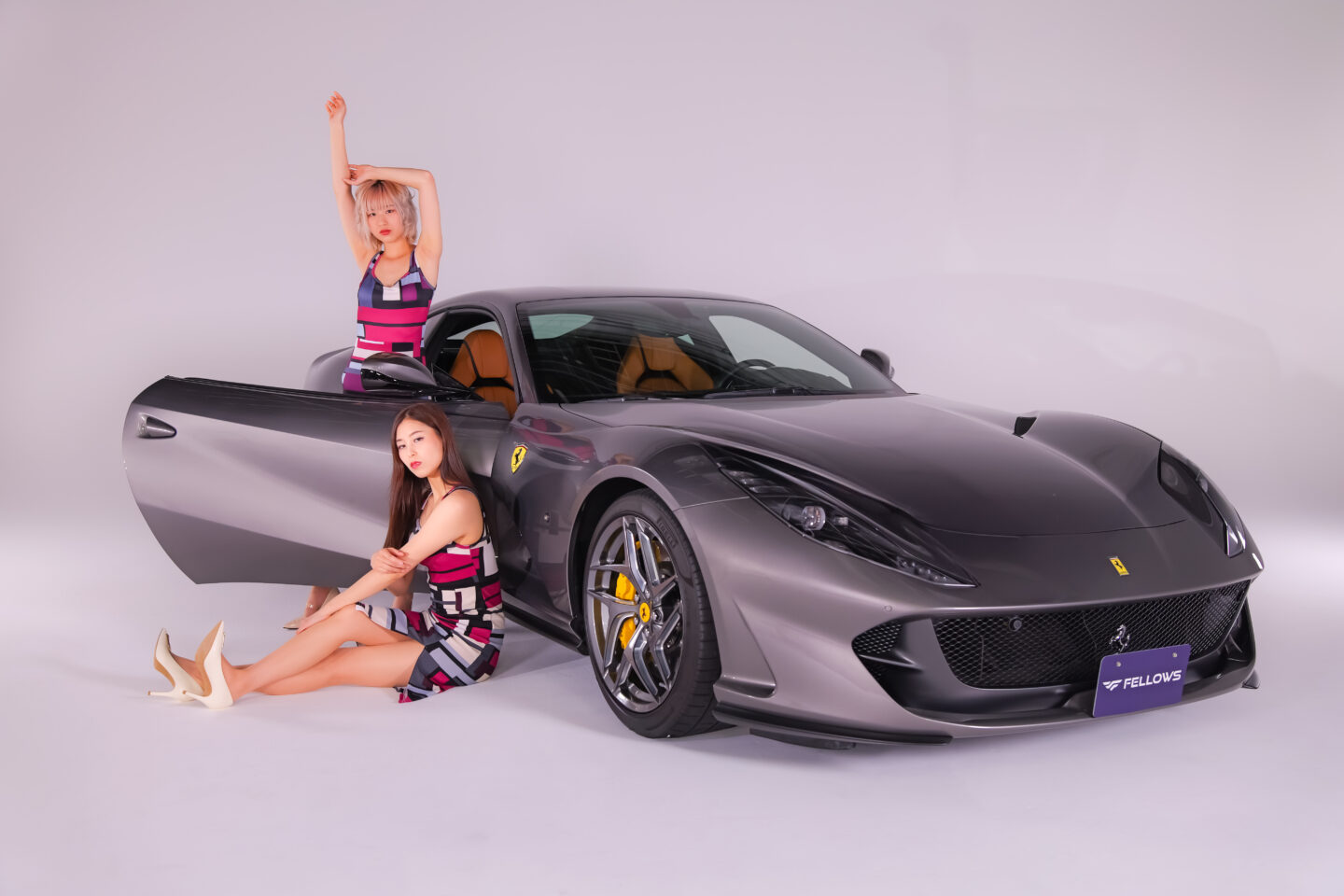 大型スタジオにFerrari812を配置してモデル2名での撮影会は華やかでした。