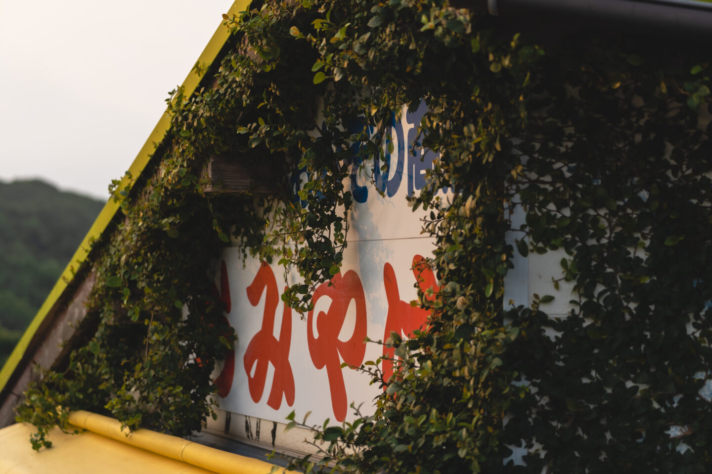 蔦で覆われた看板。観光客が帰った夕方の観光地は、独特の哀愁を漂わせている。少しノスタルジックで情緒的な場所と時間、どこを見ても美しい。