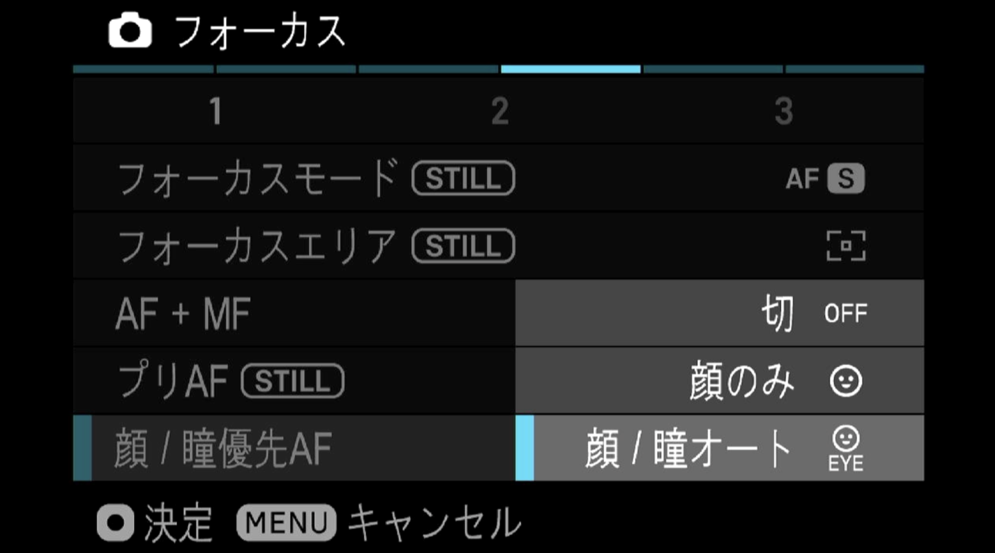 ここ最近のトレンドともなっている顔認識AF/瞳認識AFはfpにも搭載されている。メニュー内[SHOOT -フォーカス(STILL)-タブ1-顔/瞳優先AF]で[顔のみ]もしくは[顔/瞳オート]を選択すると、画角内で人物の顔が認識されれば優先的にフォーカスを合わせてくれる。ただし顔/瞳機能を使用する場合は、通常のフォーカスポイントを使用してのAFも併用するとよいだろう。