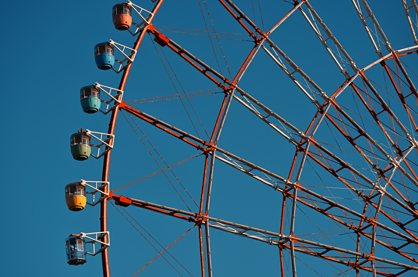 こちらがテレ端600mmでのカットです。観覧車の質感が何とも言えませんね。金属の質感、立体感、色彩感が本当に見事です。超望遠域でも手持ちでラクラク撮れるのが何よりもうれしいですね。