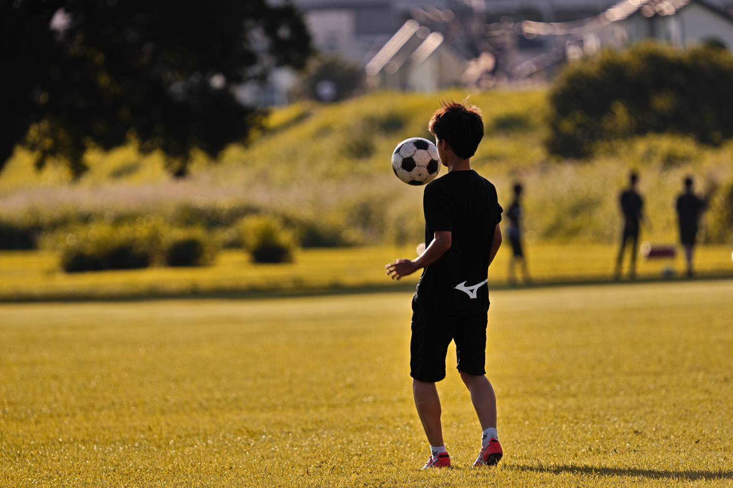 暑さが一段落した河川敷のグラウンドで、黙々とリフティングの練習をする少年。その様子をテレ端600mmで撮り続けましたが、よく効く手ブレ補正機能のおかげでしっかりとファインダーの中に捉えられました。気軽に持ち歩ける超望遠ズームレンズは、撮影フィールドを広げてくれるのでとても面白いですね。
