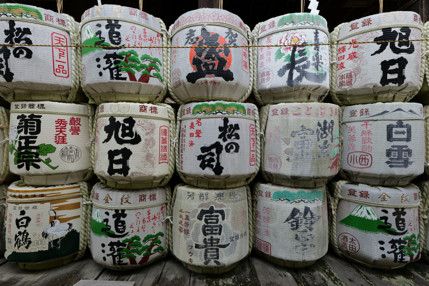神社に奉納された酒樽をF5で。チョイ絞りで撮ることによって画面のすみずみまでピントを合わせることができました。またコントラストも上がり、シャープな像を得ることができましたよ。