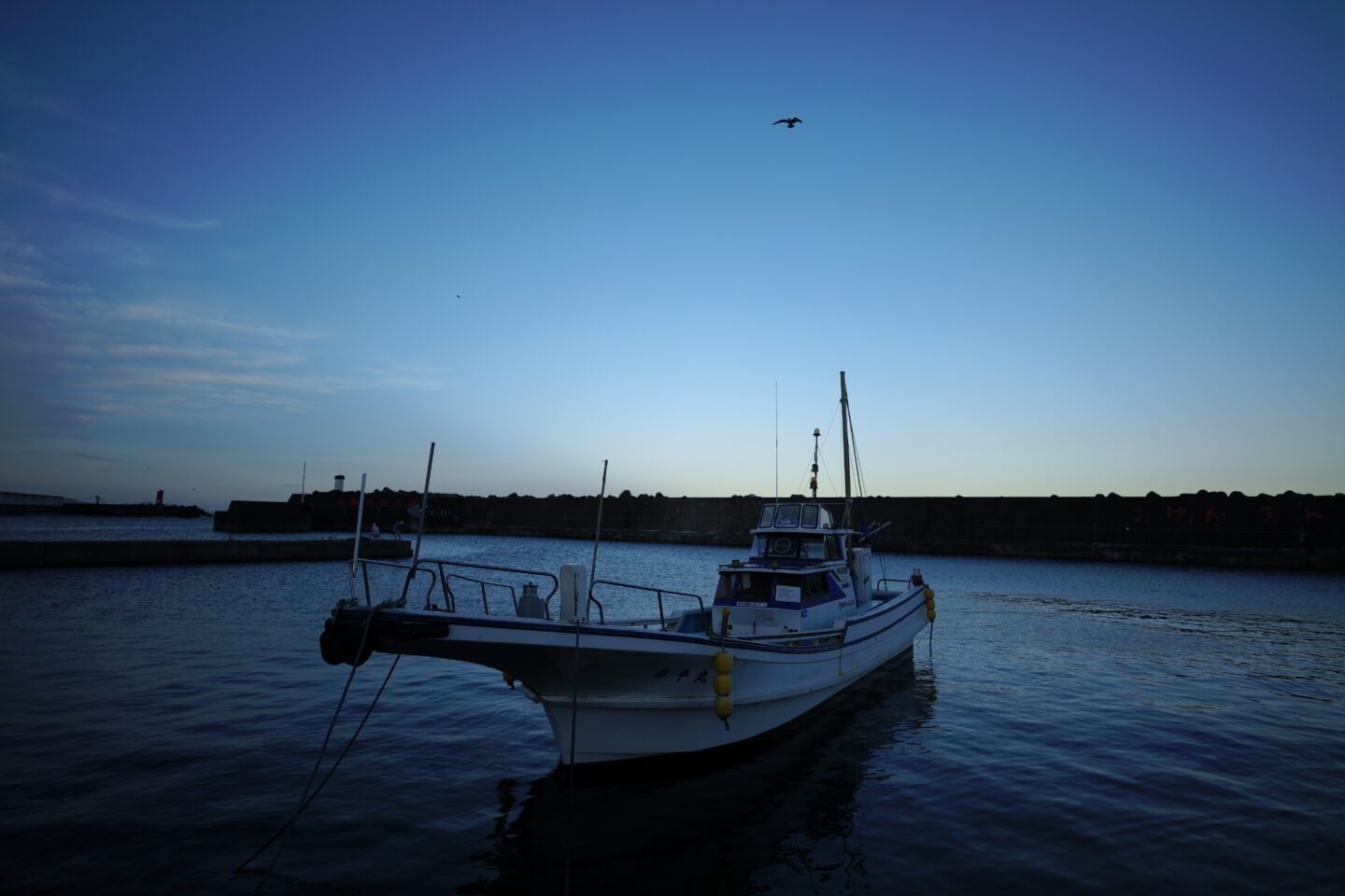 近くの漁港にやってきました。そろそろ日が暮れようかという夏の終わりの週末、ちょっともの悲しい感じですね。絞り開放だとやさしく周辺光量が落ちてくれました。うまい具合にはまって気に入った仕上がりに。チョイ絞りで撮ればフラットな描写になってくれますよ。